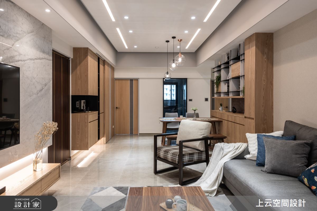 由上云空間設計精心規劃的23坪三房住宅空間,家庭成員一共有2位大人、2位小孩。因應屋主需求,設計師運用現代風作為主軸,搭配乳膠漆、超耐磨木地板、石英磚/拋光石英磚、鐵件、烤玻、鍍鈦金屬、木作貼皮、烤漆、系統板材、大理石、繃布、壓花玻璃、特殊漆,打造全家人的夢想家居。