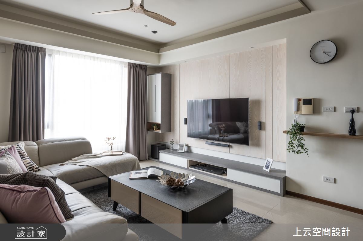 上云空間設計以乳膠漆、六角磚/蜂巢磚、花磚、超耐磨木地板、灰鏡、茶玻、烤漆、鋼刷木皮、大理石、人造石、長虹玻璃的搭配應用,呈現現代風居家氛圍,將此間32坪、四房、單層、新成屋(5年以下)打造成舒適愜意的家庭空間,完成2位大人、2位小孩全家人的夢想之居。