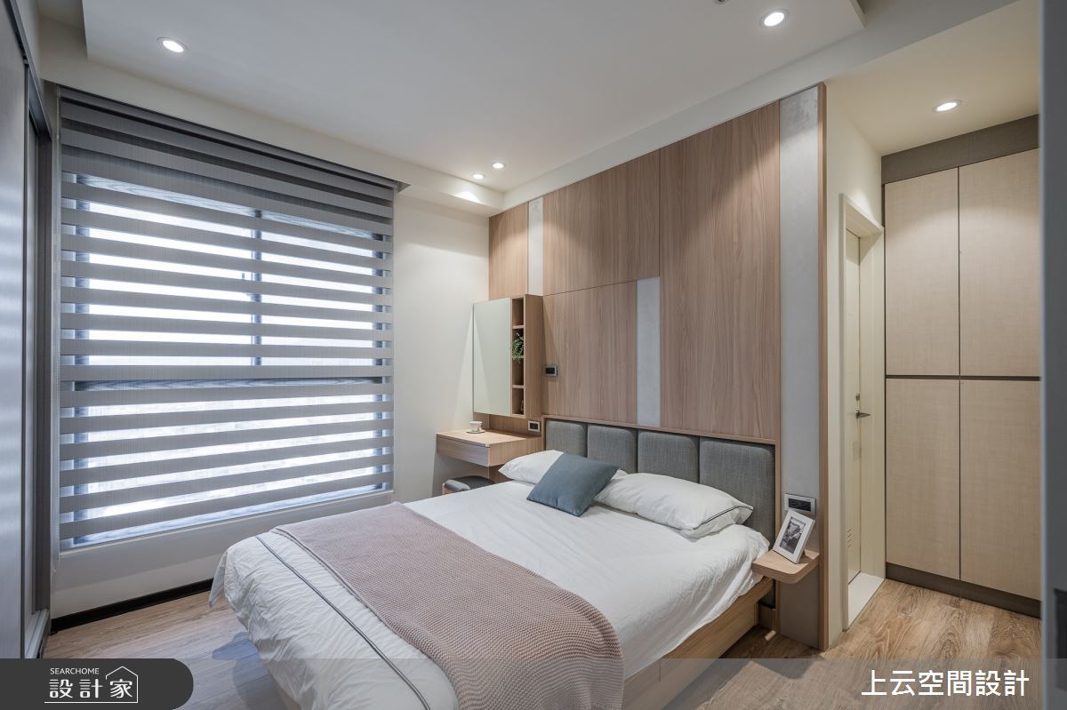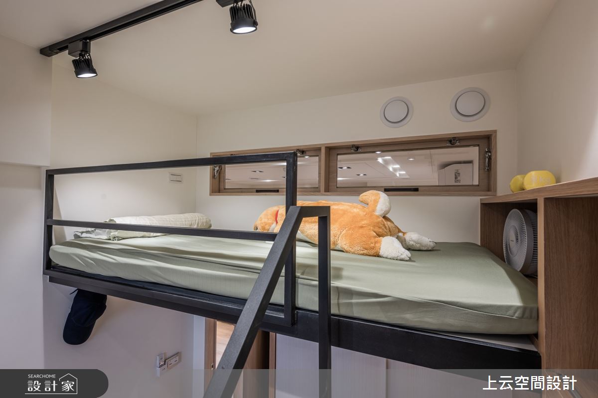 上云空間設計以乳膠漆、超耐磨木地板、鐵件、烤玻、木作貼皮、烤漆、噴漆、茶鏡的搭配應用,呈現現代風居家氛圍,將此間18坪、三房、單層、新成屋(5年以下)打造成舒適愜意的家庭空間,完成2位大人、2位小孩全家人的夢想之居。