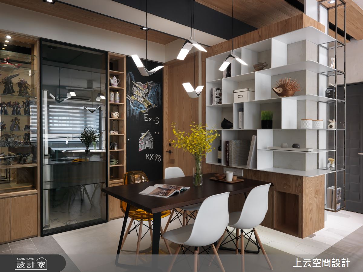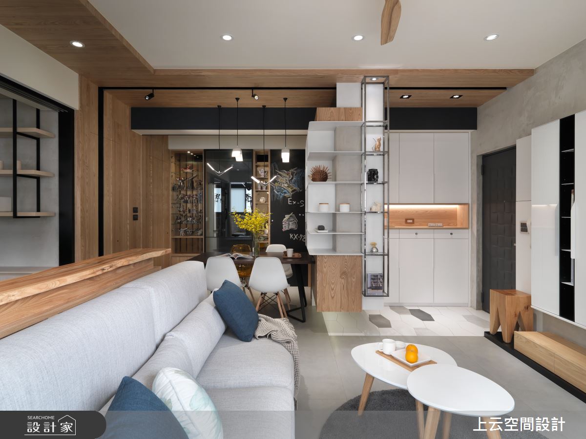 來自上云空間設計的21坪混搭風住宅案,屋主一家人共有2位大人、1位小孩,是一間單層新成屋(5年以下)的三房格局,設計師藉由建材以乳膠漆、超耐磨木地板、鐵件、茶玻、系統板材、木百葉、特殊漆的搭配應用,實現一家人的理想生活。