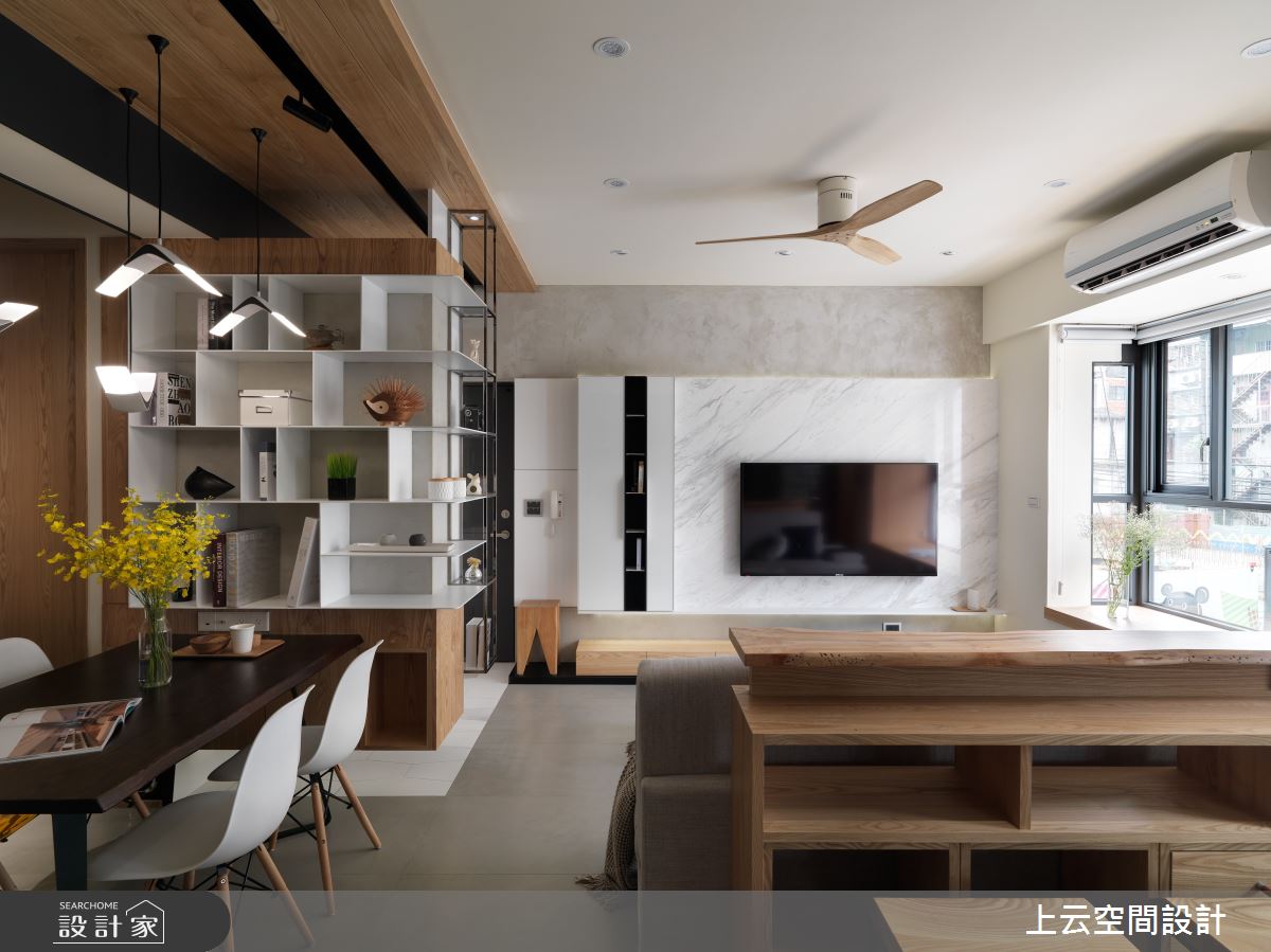來自上云空間設計的23坪現代人文風住宅案,屋主一家人共有2位大人、1位小孩,是一間單層老屋(31~40年)的三房格局,設計師藉由建材以六角磚/蜂巢磚、花磚、水泥漆、磁性漆/磁性黑板漆、海島型木地板、鐵件、茶玻、烤玻、鍍鈦金屬、烤漆、鋼刷木皮、系統板材、大理石、磁磚、水泥/水泥粉光、軌道燈、珪藻土、石材、噴漆、噴砂玻璃的搭配應用,實現一家人的理想生活。