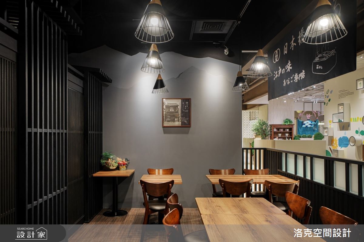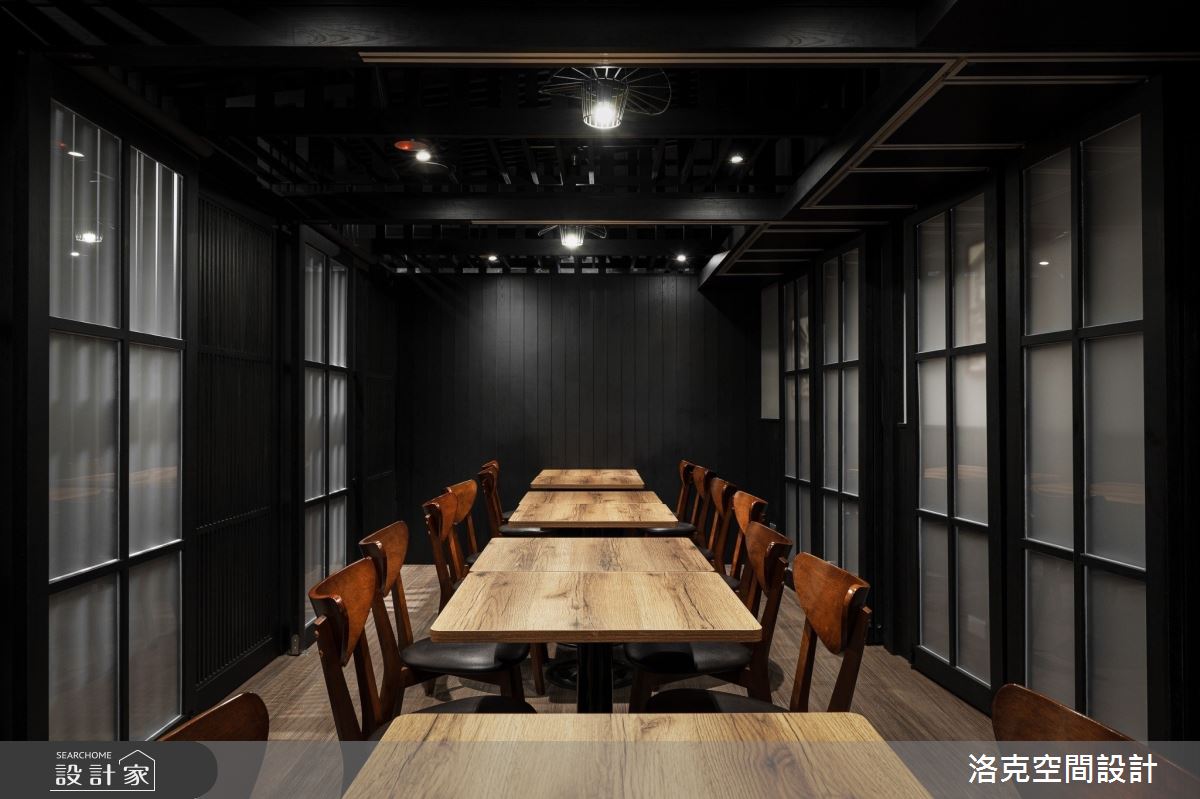 洛克空間設計以磁磚、木地板、木格柵、花磚、玻璃、乳膠漆、山型造型木作的搭配應用,呈現現代風的風格氣息,將此間35坪新成屋(5年以下)優雅詮釋成舒適愜意的商業空間。