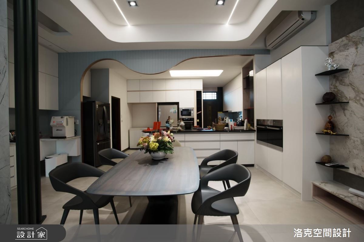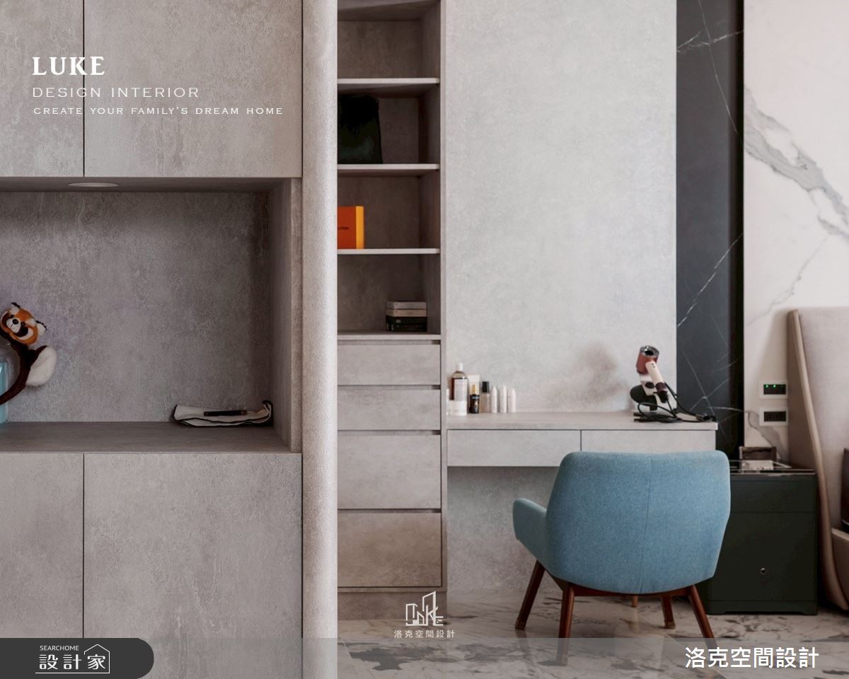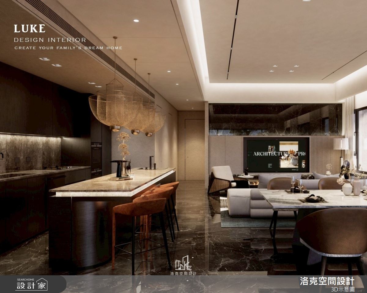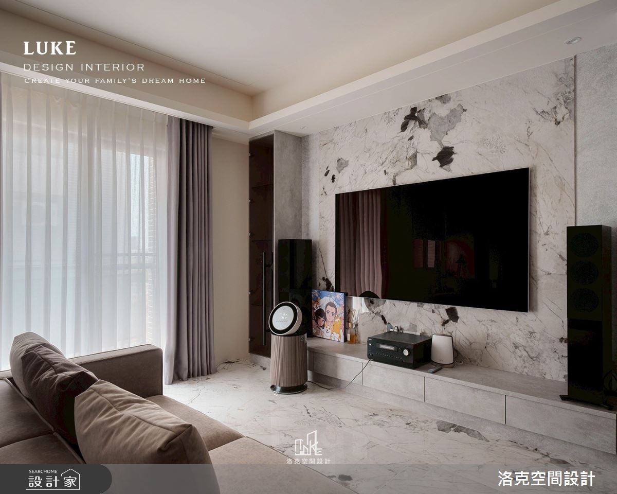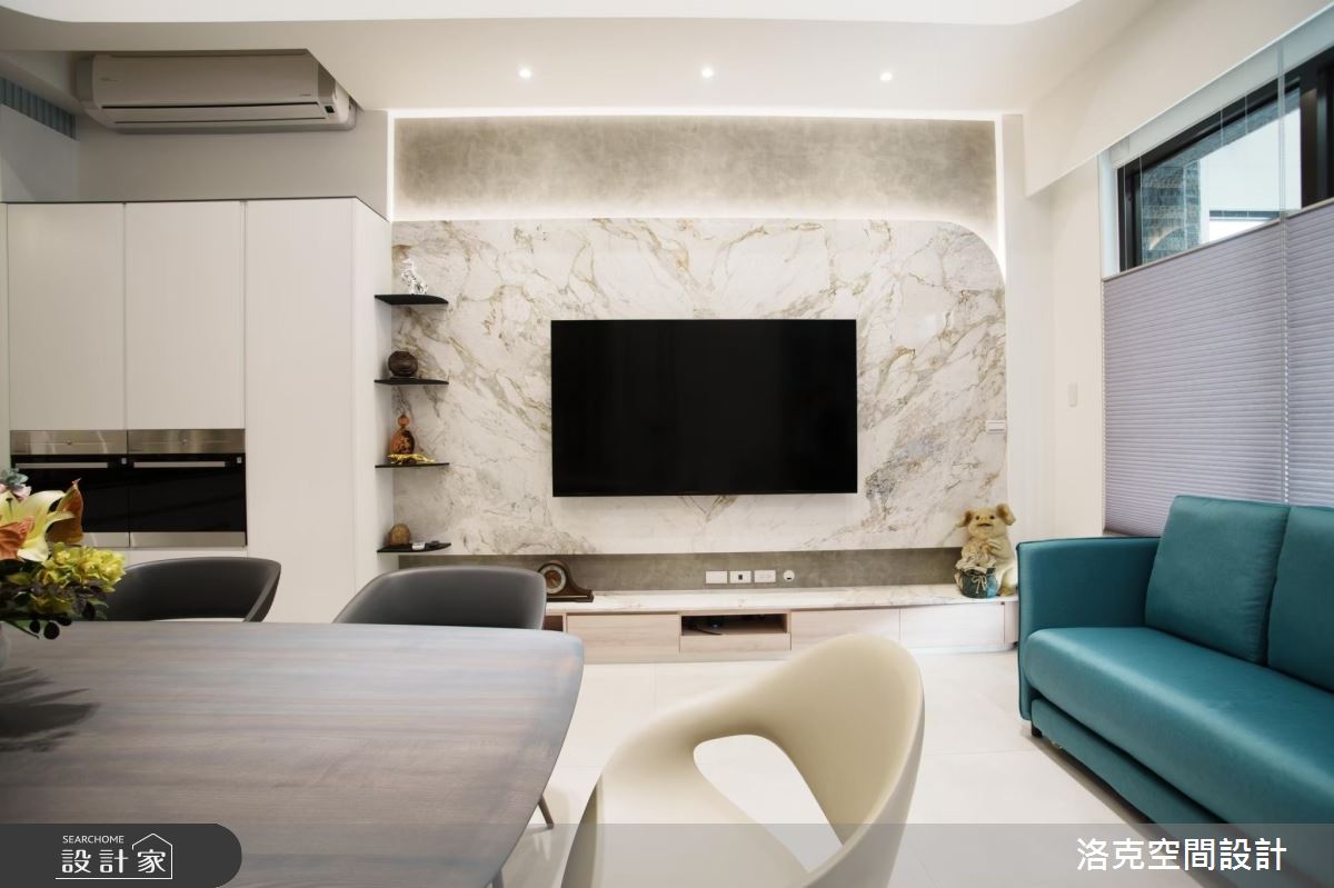來自洛克空間設計開發有限公司的9坪現代奢華風住宅案,設計師藉由建材以木作櫃體、牆面大板磚、地坪大理石、玻璃櫃體門片、櫃體金屬手把的搭配應用,實現一家人的理想生活。