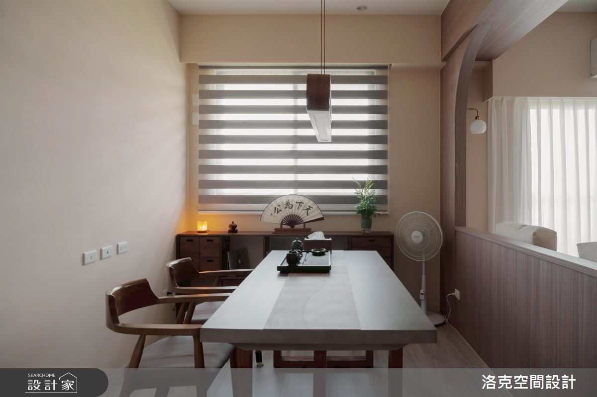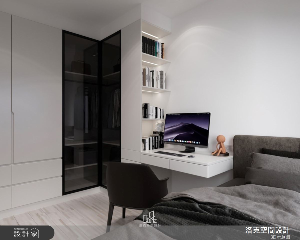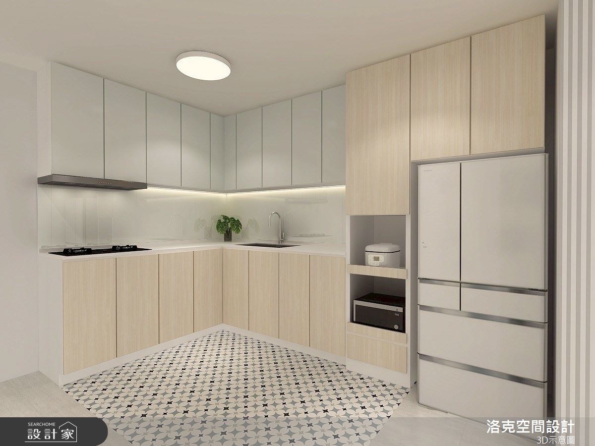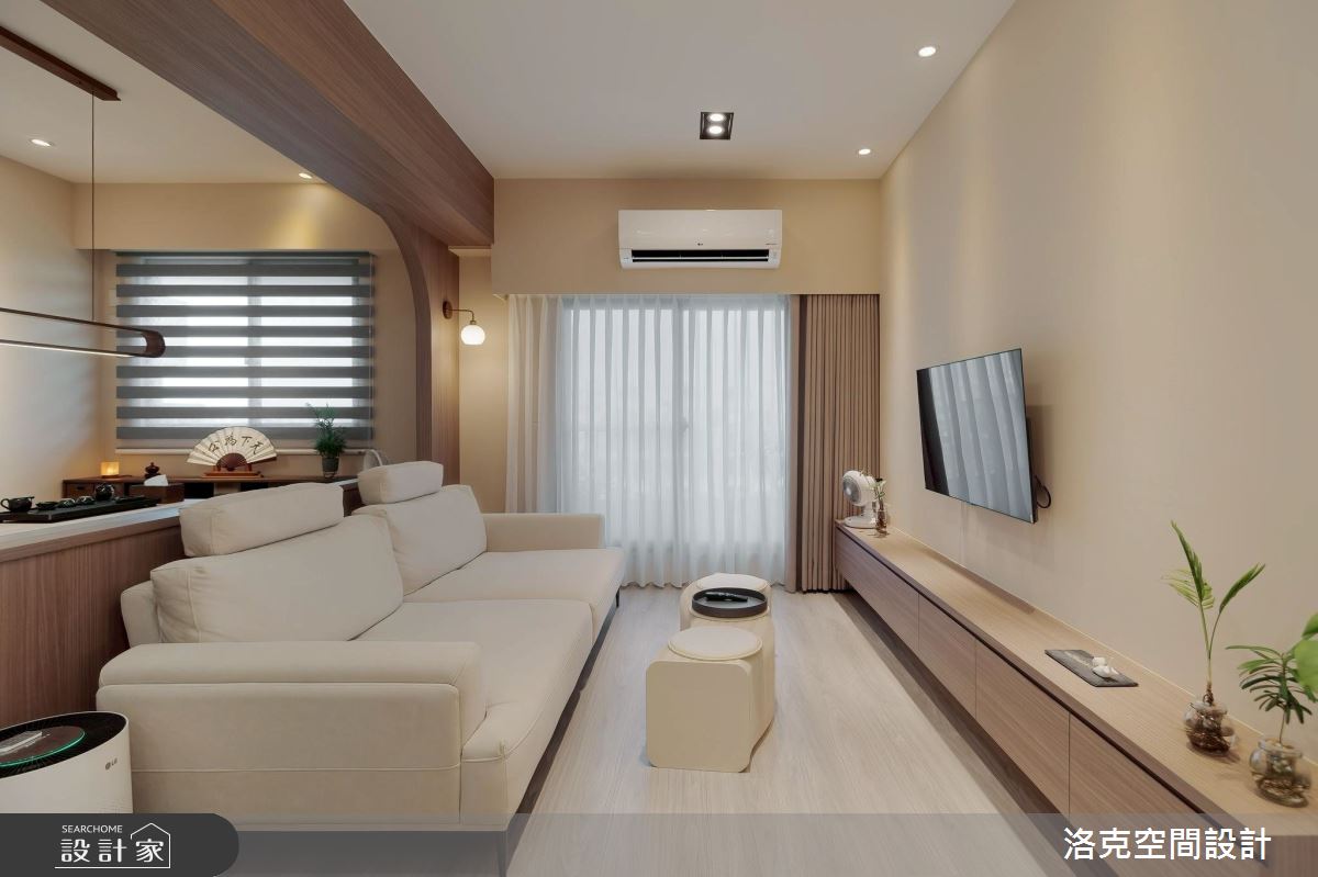洛克空間設計開發有限公司以卡扣木地板、牆面跳色漆、系統櫃、訂製傢俱、造型木作的搭配應用,呈現簡約風居家氛圍,將此間16坪、兩房、單層、新成屋(5年以下)打造成舒適愜意的家庭空間,完成1位大人全家人的夢想之居。