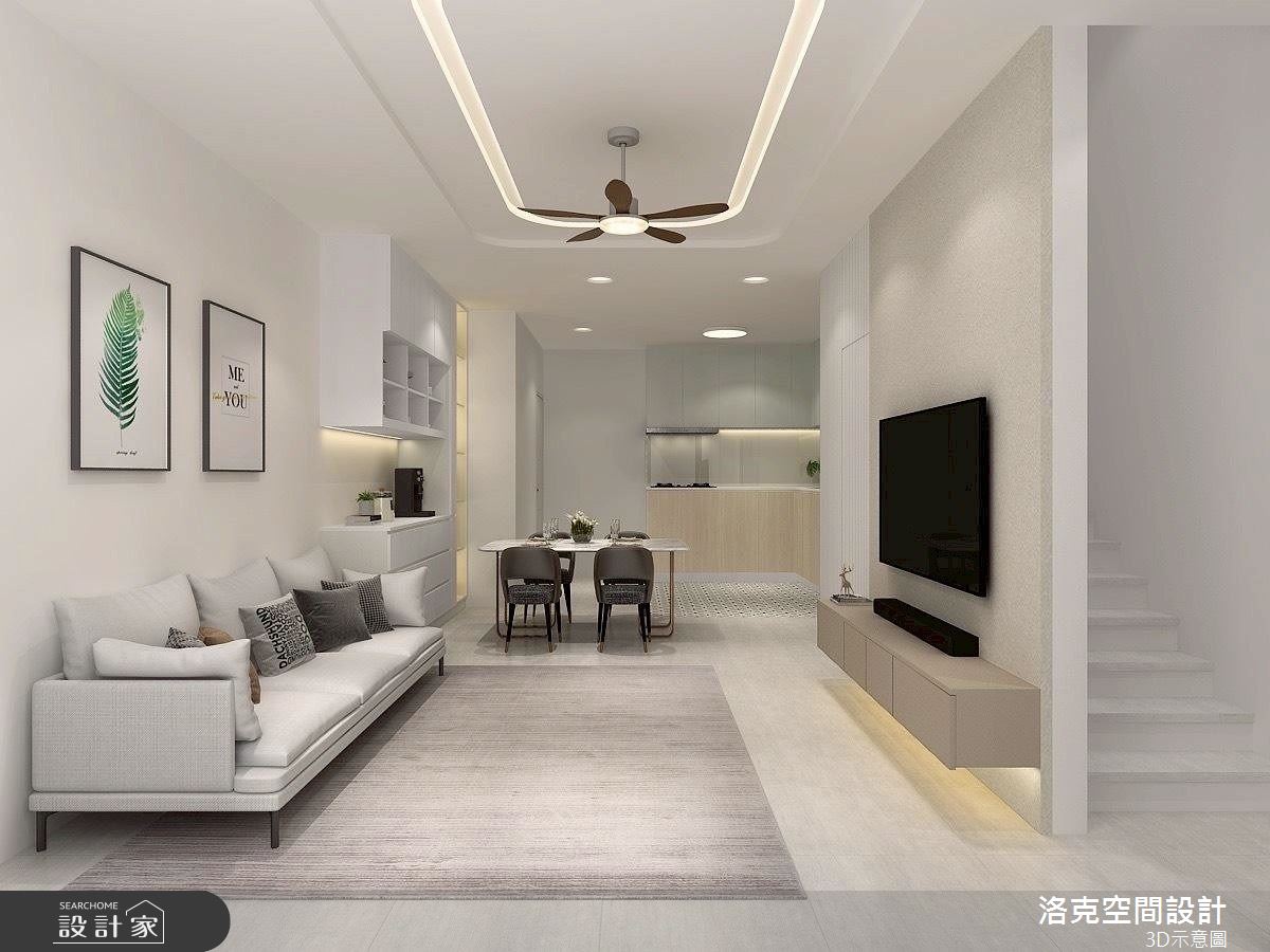 來自洛克空間設計開發有限公司的36坪北歐簡約風住宅案,屋主一家人共有2位大人,是一間透天別墅中古屋(5~15年)的四房格局,設計師藉由建材以一般牆面水泥面漆、電視牆藝術塗料、天花高低差造型、簡約白櫃體、衛浴磁磚更新的搭配應用,實現一家人的理想生活。