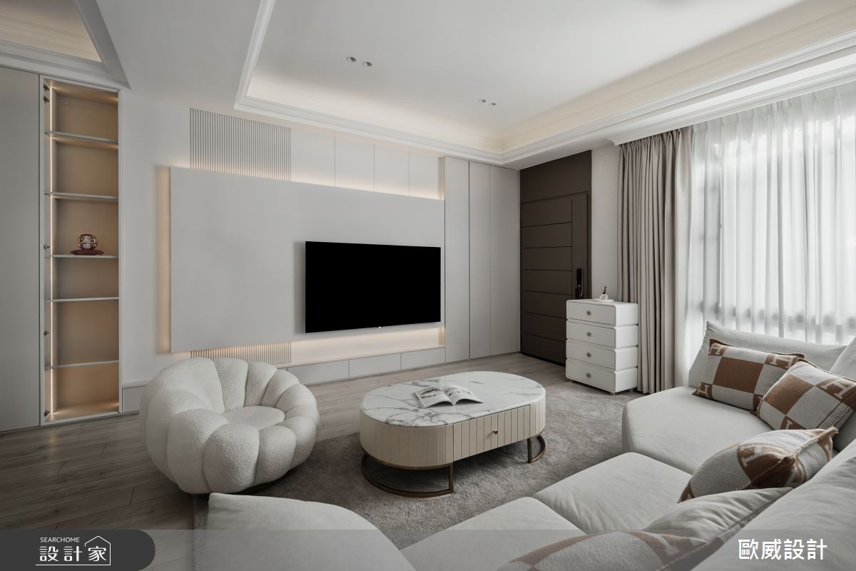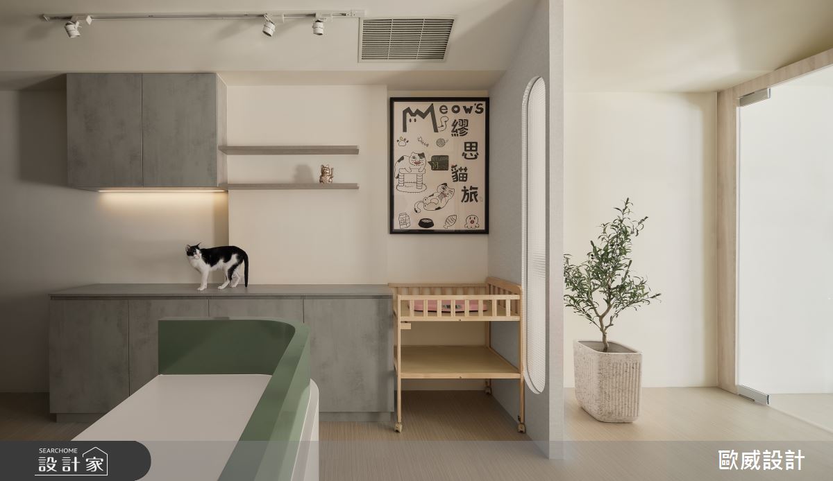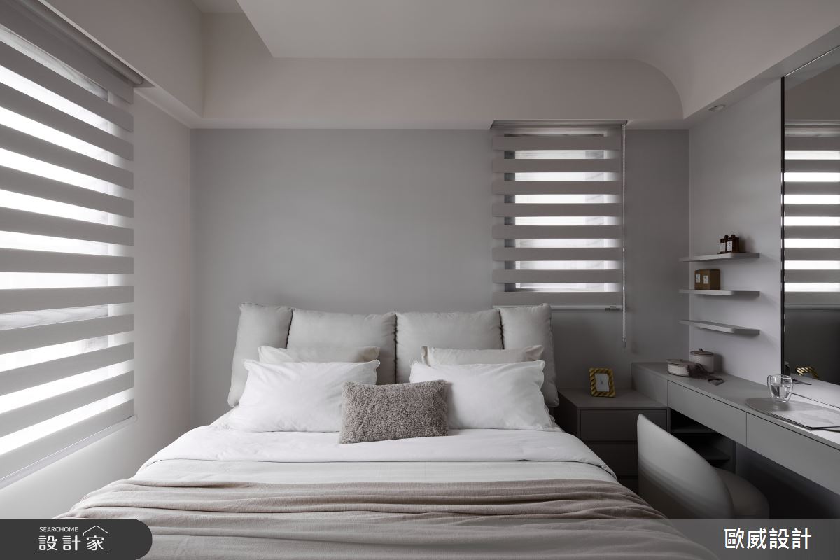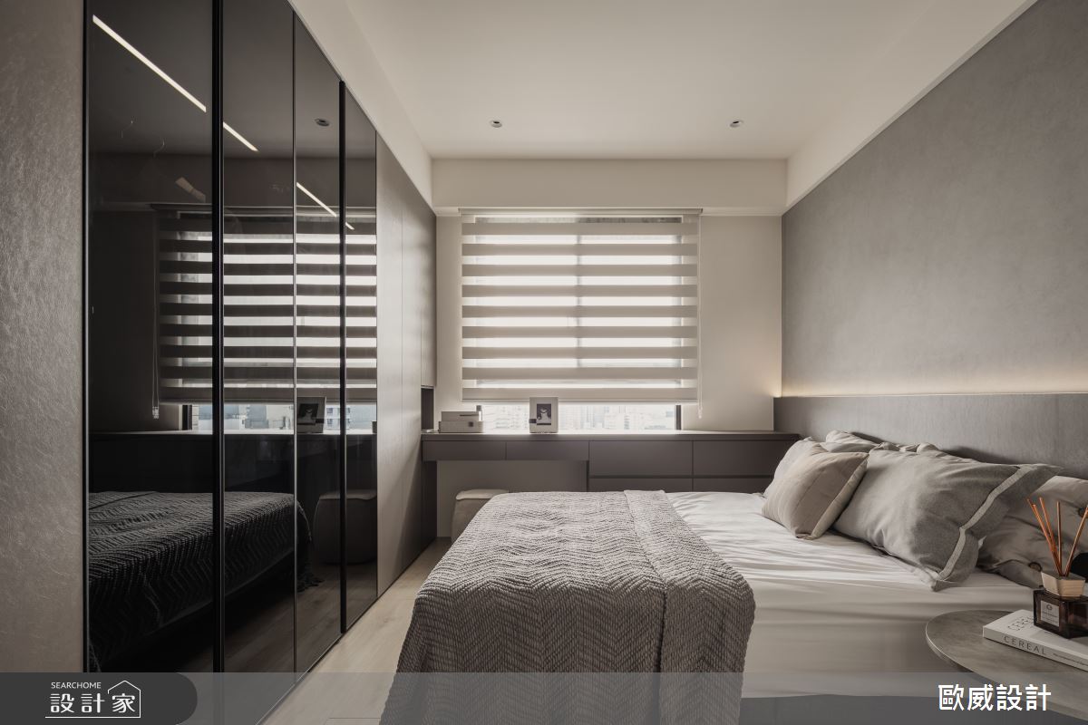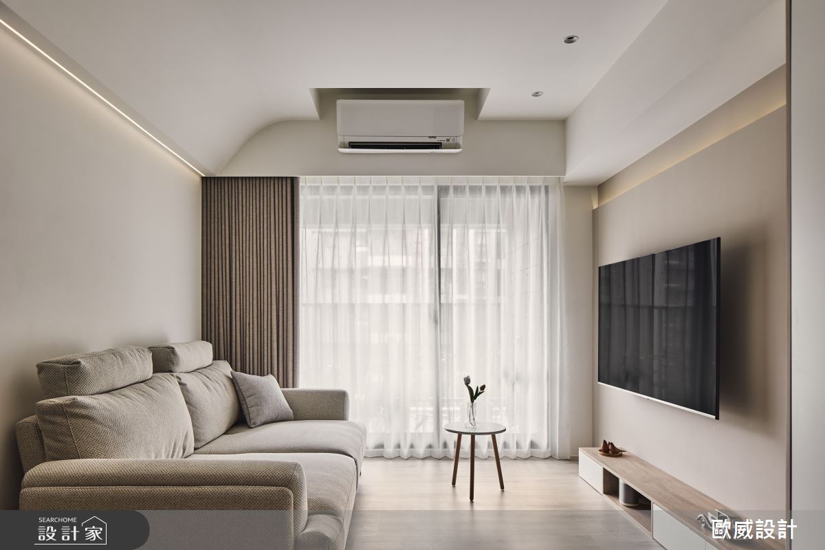 本案為歐威室內設計有限公司的20坪現代風老屋(50年以上)設計作品,格局為單層三房的居住空間。居住成員包含2位大人。全室建材的搭配,應用油漆、超耐磨木地板、石英磚/拋光石英磚、灰鏡、烤玻、木作貼皮、烤漆、系統板材、大理石、磁磚、水泥/水泥粉光、義大利藝術塗料,展現溫馨的居家氛圍。