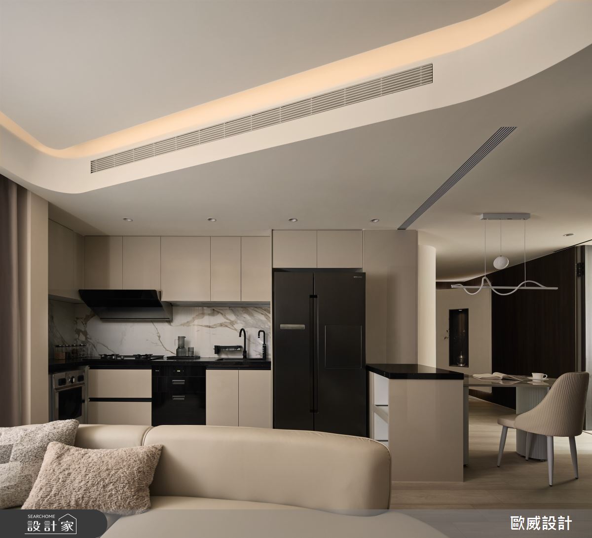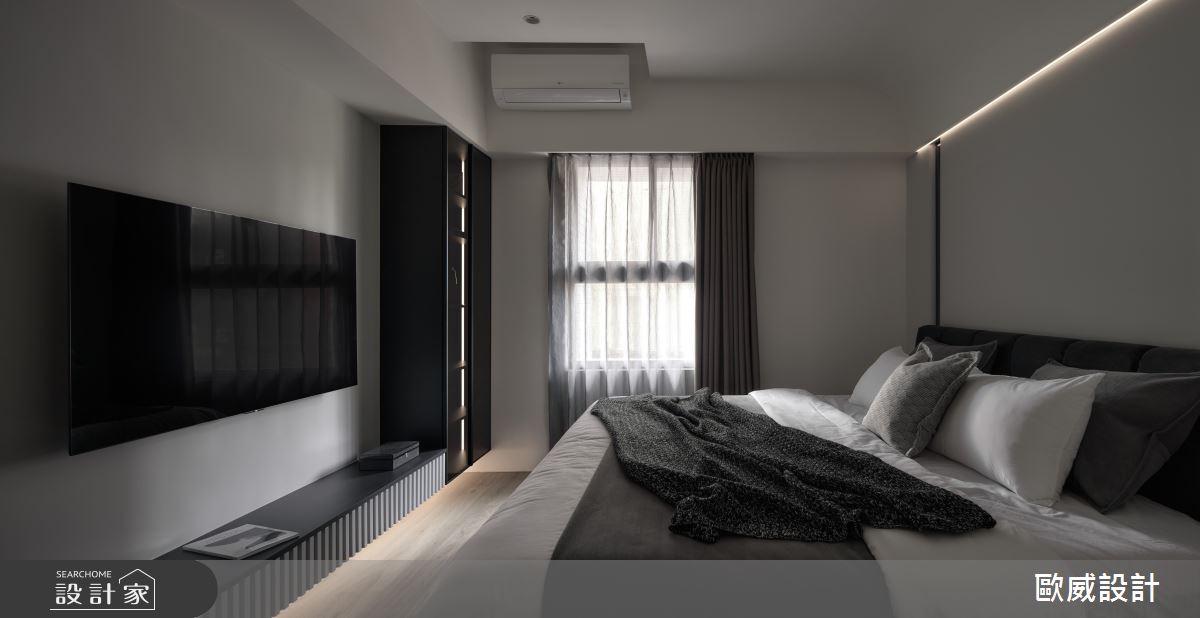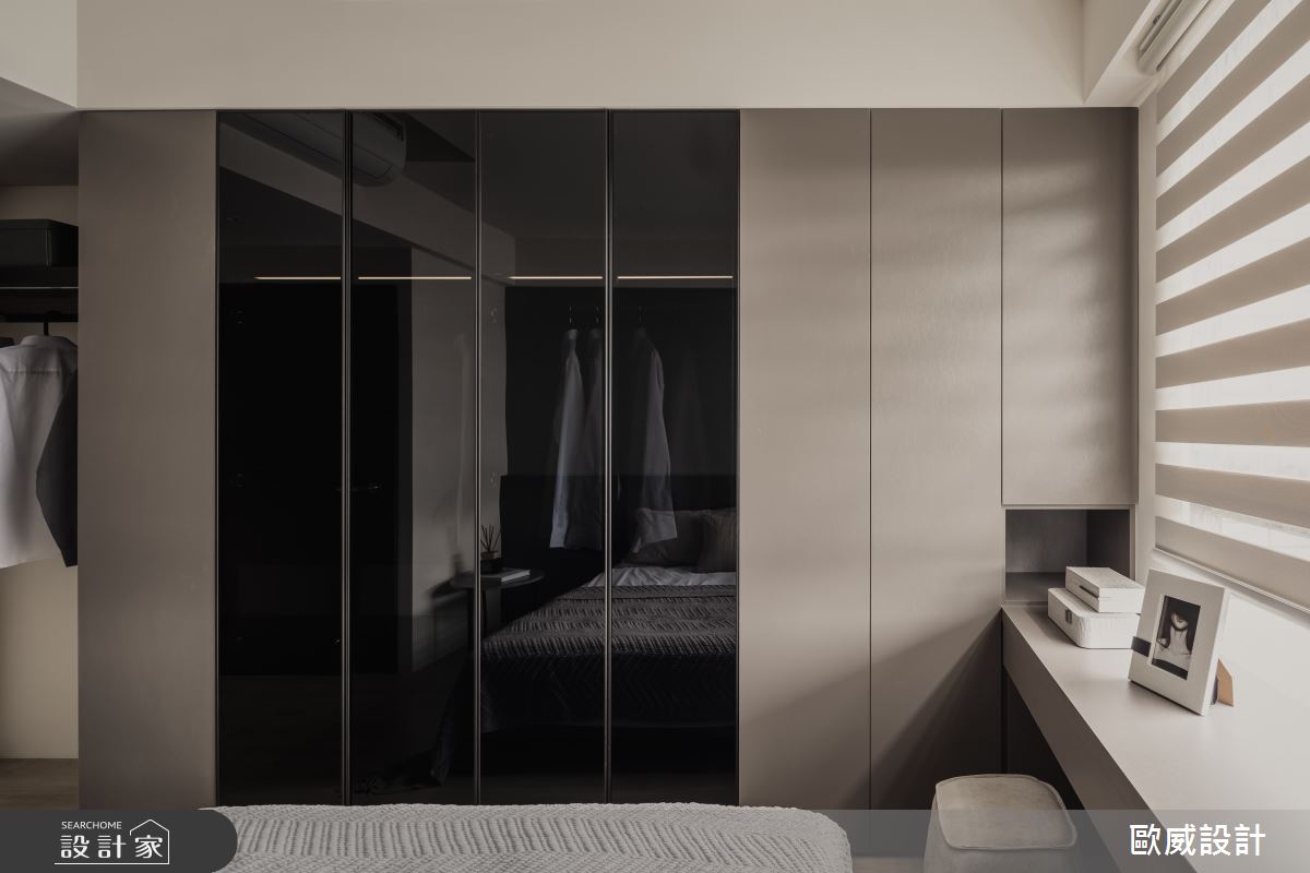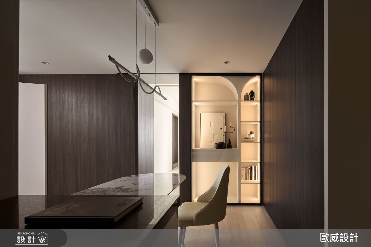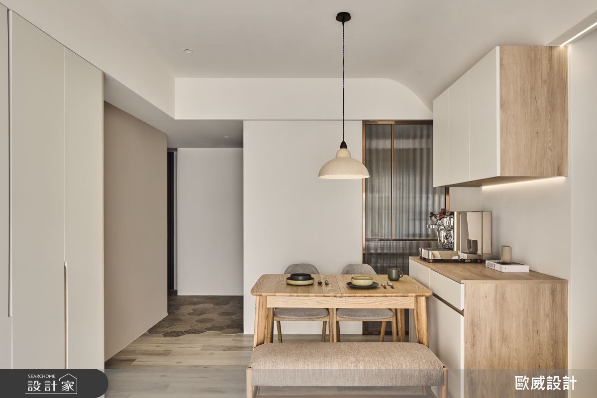 由歐威室內設計有限公司精心規劃的18坪三房住宅空間,家庭成員一共有2位大人。因應屋主需求,設計師運用現代風作為主軸,搭配油漆、超耐磨木地板、鐵件、鍍鈦金屬、木作貼皮、系統板材、磁磚、清玻,打造全家人的夢想家居。