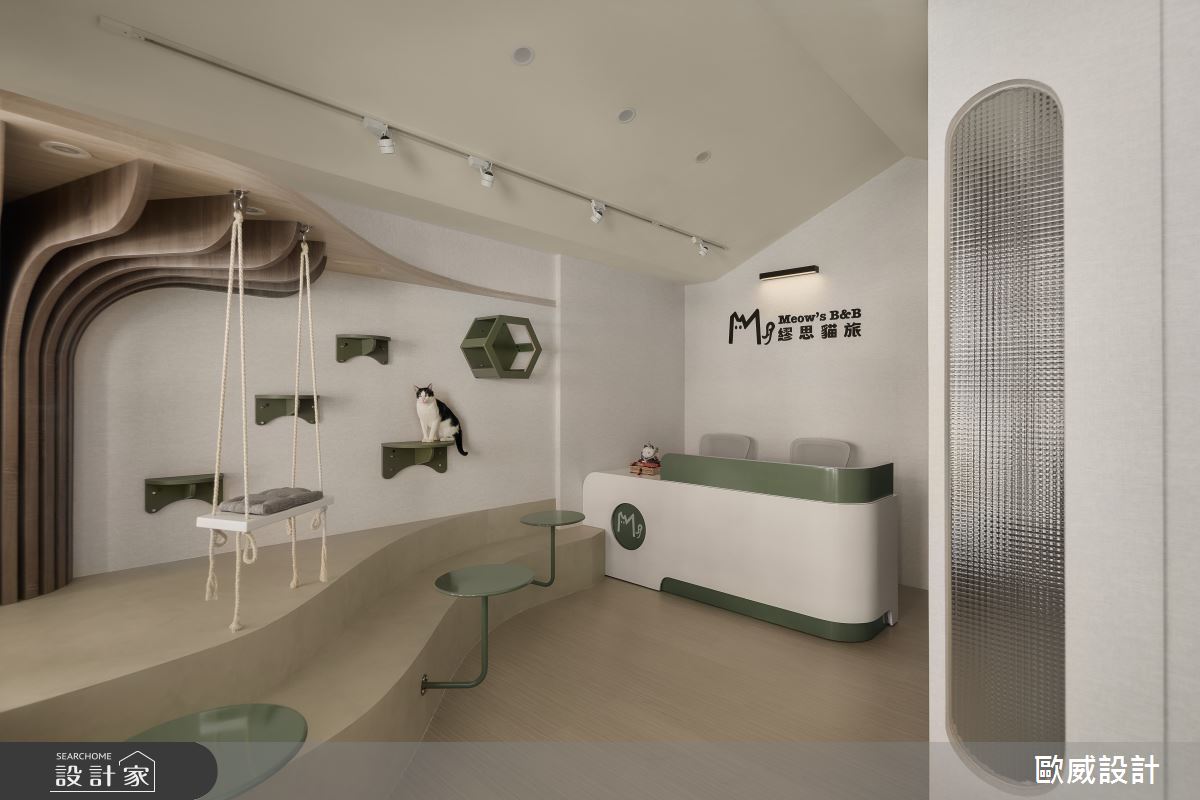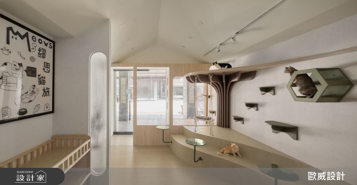 歐威室內設計有限公司以油漆、壁紙、超耐磨木地板、PVC地板、鐵件、木作貼皮、系統板材、磁磚的搭配應用,呈現簡約風的風格氣息,將此間30坪老屋(16~30年)優雅詮釋成舒適愜意的商業空間。