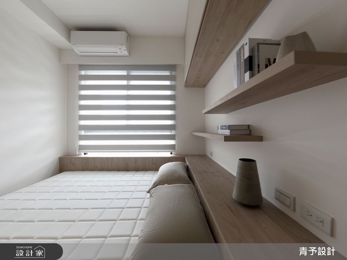 本案為青予設計的10坪日式無印風新成屋(5年以下)設計作品,格局為單層一房的居住空間。居住成員包含2位大人。全室建材的搭配,應用六角磚、鋁框玻璃拉門、小冰柱玻璃、人造石、超耐磨木地板、乳膠漆、木作貼皮、系統板材,展現溫馨的居家氛圍。
