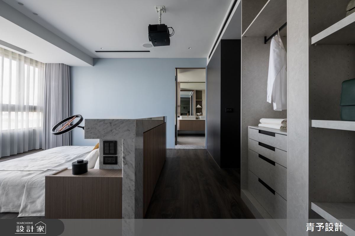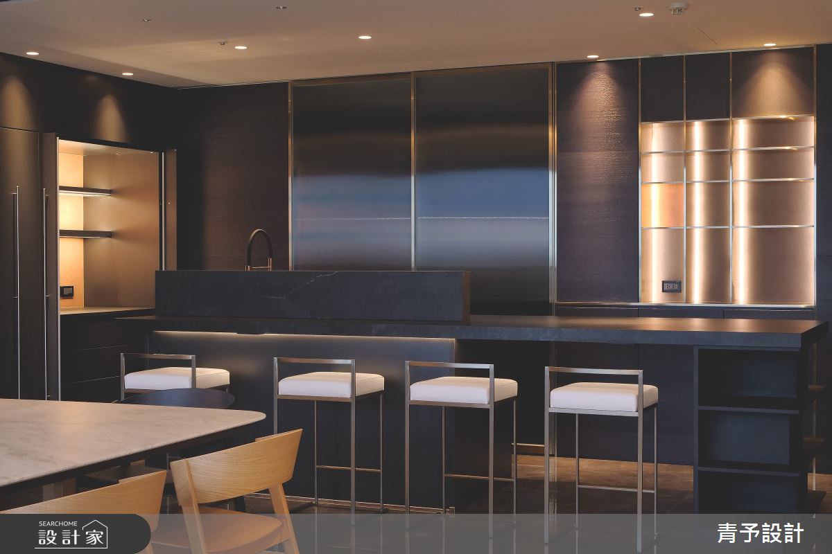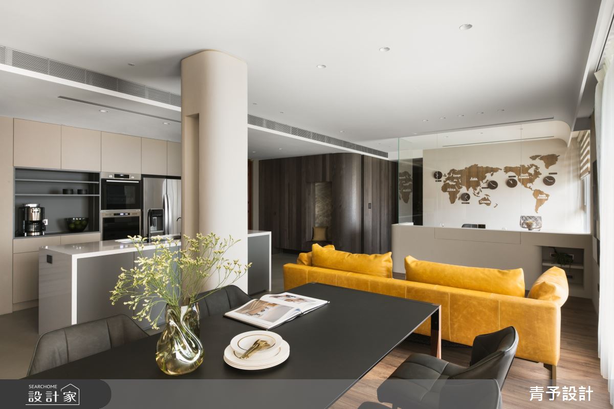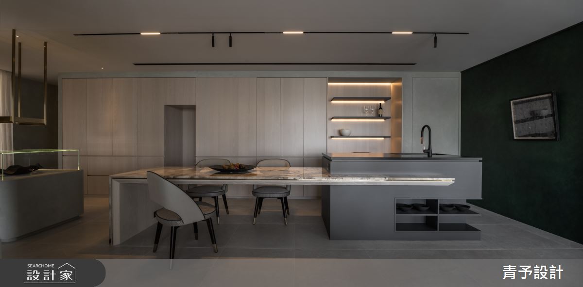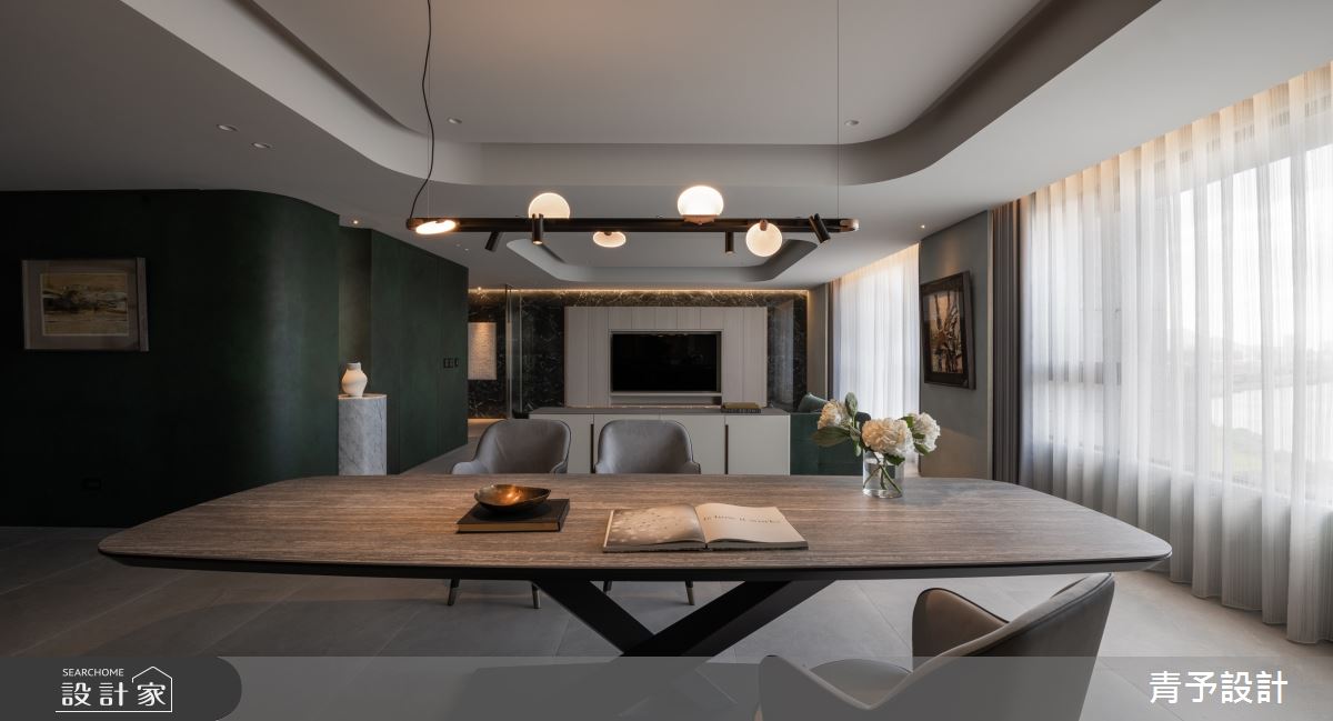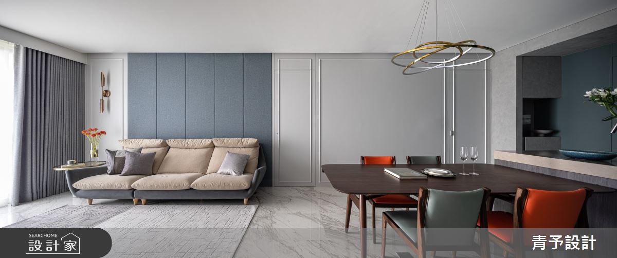 由青予設計精心規劃的81坪三房住宅空間。因應屋主需求,設計師運用現代風作為主軸,搭配薄板磁磚、特殊塗料、石材、鍍鈦鐵件、班傑明耐磨漆,打造全家人的夢想家居。