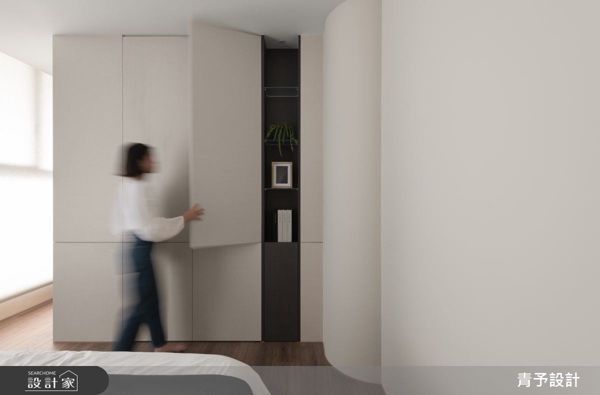 青予設計以旋轉電視柱、系統板、木皮板、班傑明漆、spc石塑地板的搭配應用,呈現現代風居家氛圍,將此間24坪、兩房、單層、老屋(41~50年)打造成舒適愜意的家庭空間,完成2位大人、1位小孩全家人的夢想之居。