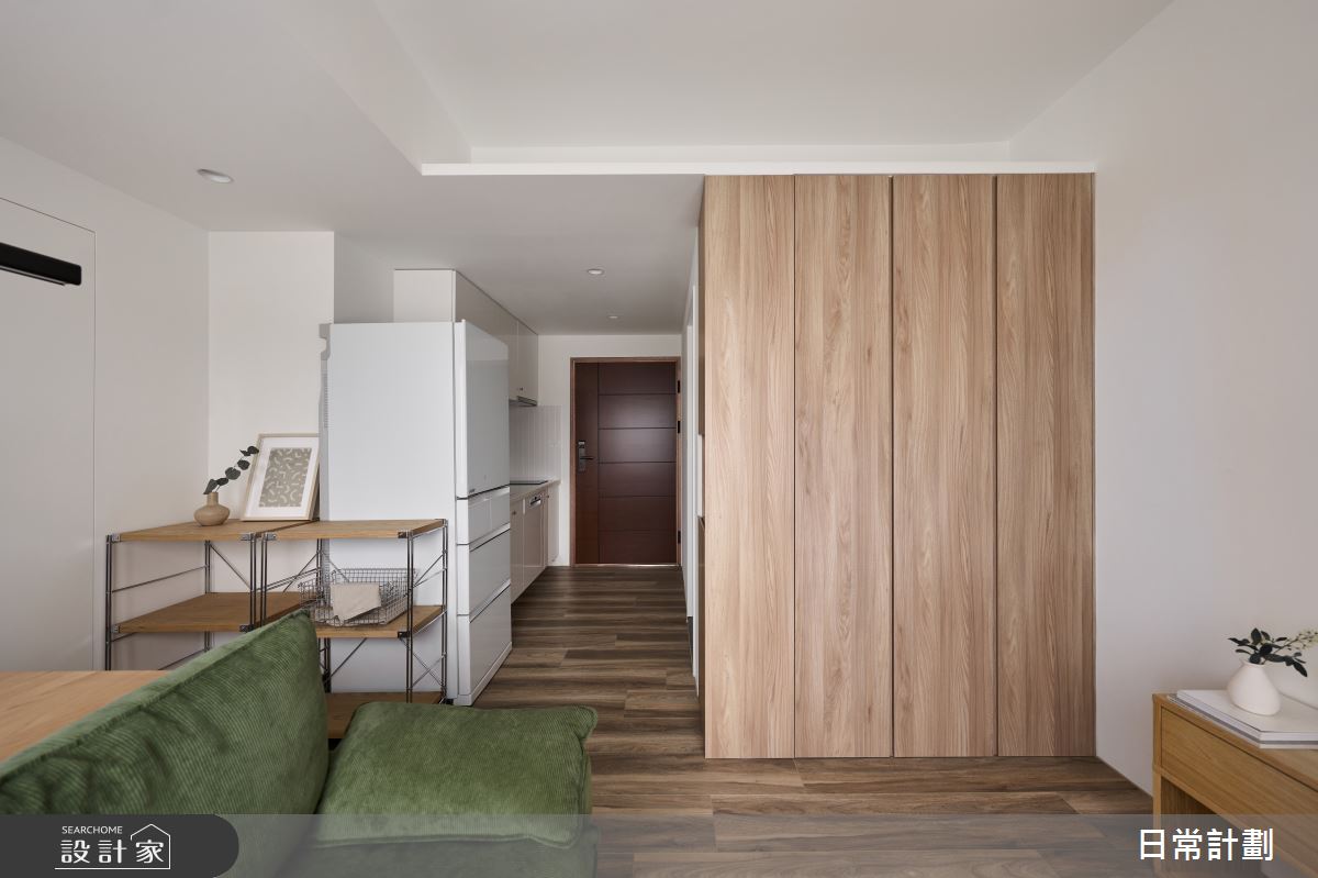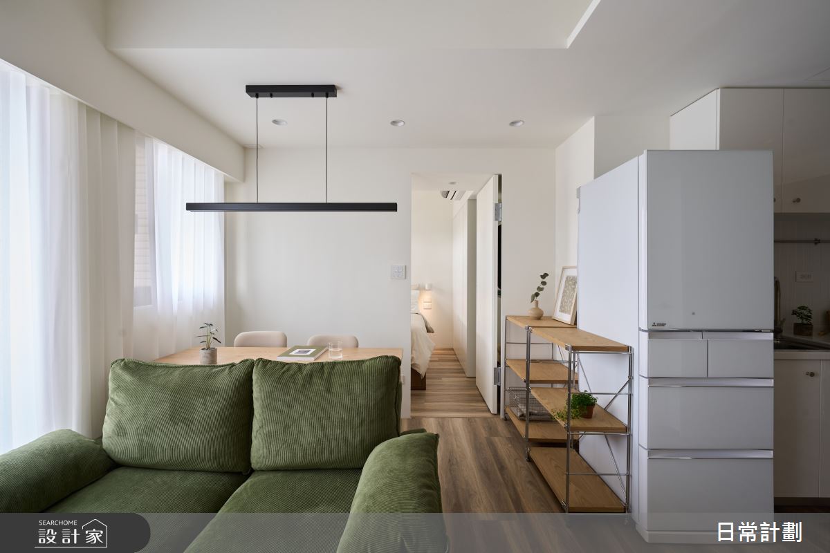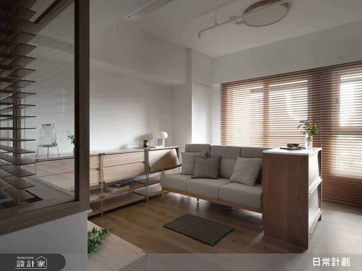 來自日常計劃空間設計的10坪日式無印風住宅案,屋主一家人共有2位大人,是一間單層新成屋(5年以下)的一房格局,設計師藉由建材以乳膠漆、鐵道磚、SPC地板、烤漆、系統板材、磁磚的搭配應用,實現一家人的理想生活。