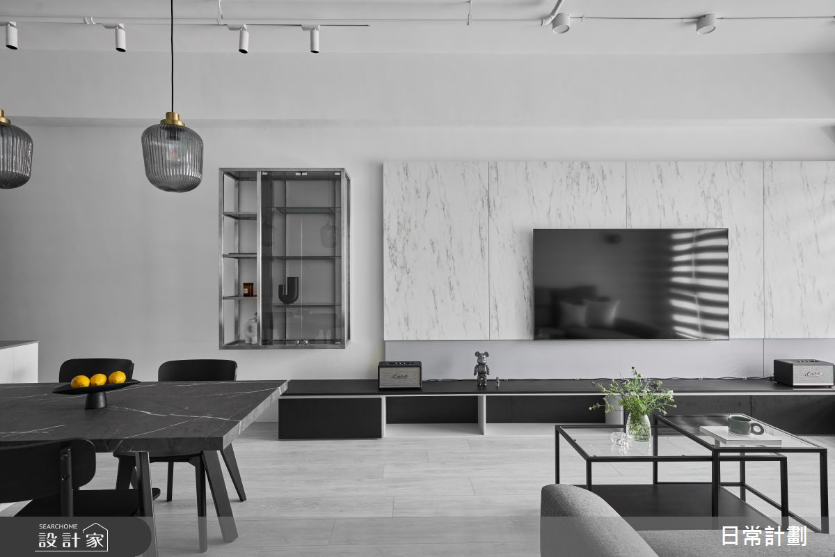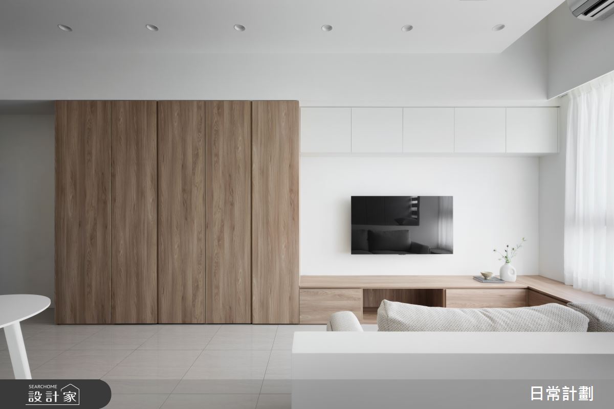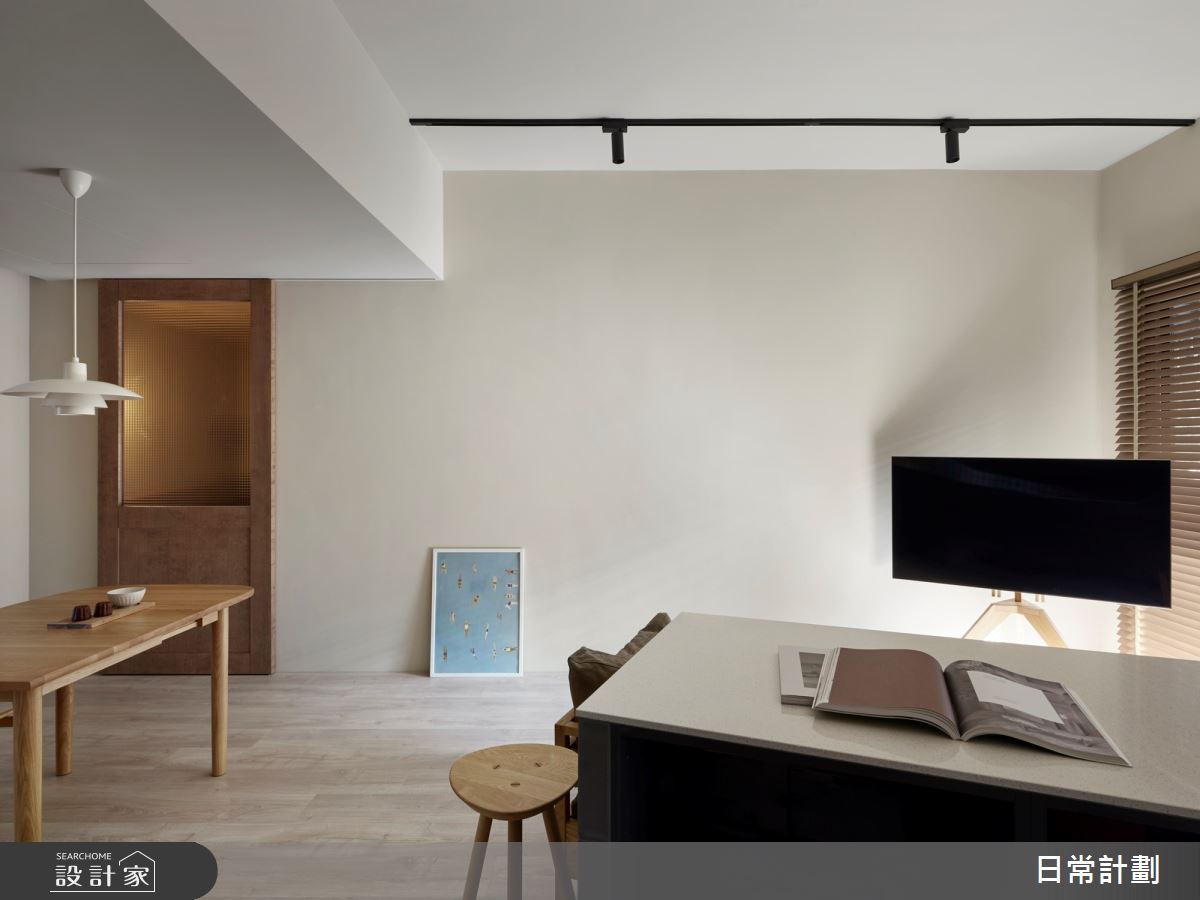 來自日常計劃空間設計的15坪現代風住宅案,屋主一家人共有2位大人,是一間單層新成屋(5年以下)的兩房格局,設計師藉由建材以乳膠漆、超耐磨木地板、鐵件、木作貼皮、系統板材、磁吸軌道燈的搭配應用,實現一家人的理想生活。
