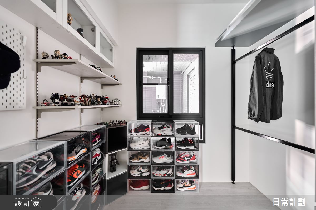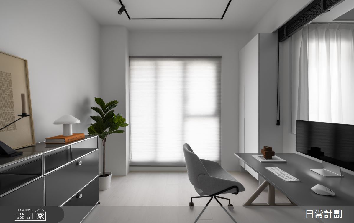 由日常計劃空間設計精心規劃的26坪四房住宅空間,家庭成員一共有1位大人。因應屋主需求,設計師運用簡約風作為主軸,搭配乳膠漆、木地板、不鏽鋼、鐵件、系統板材、人造石、軌道燈、噴漆,打造全家人的夢想家居。