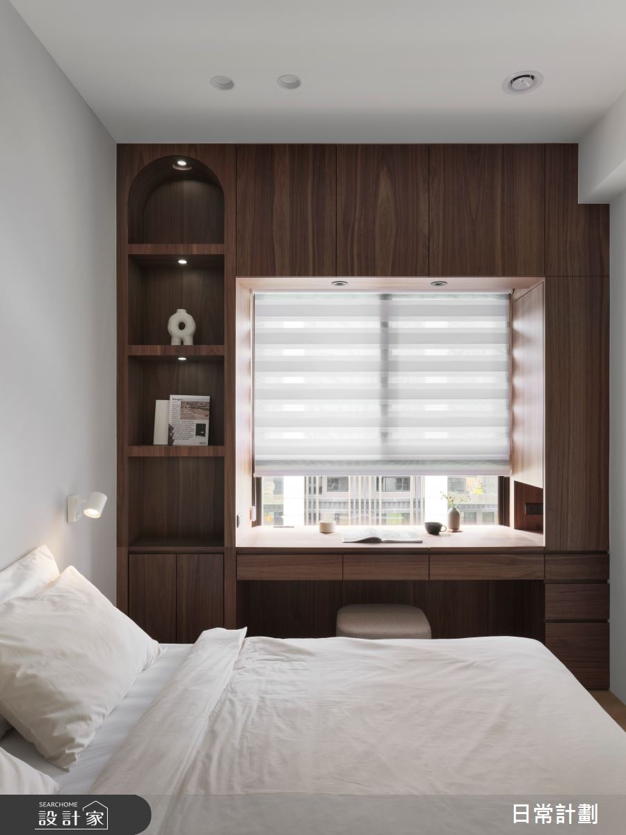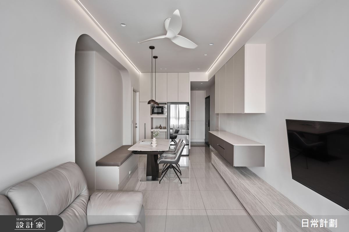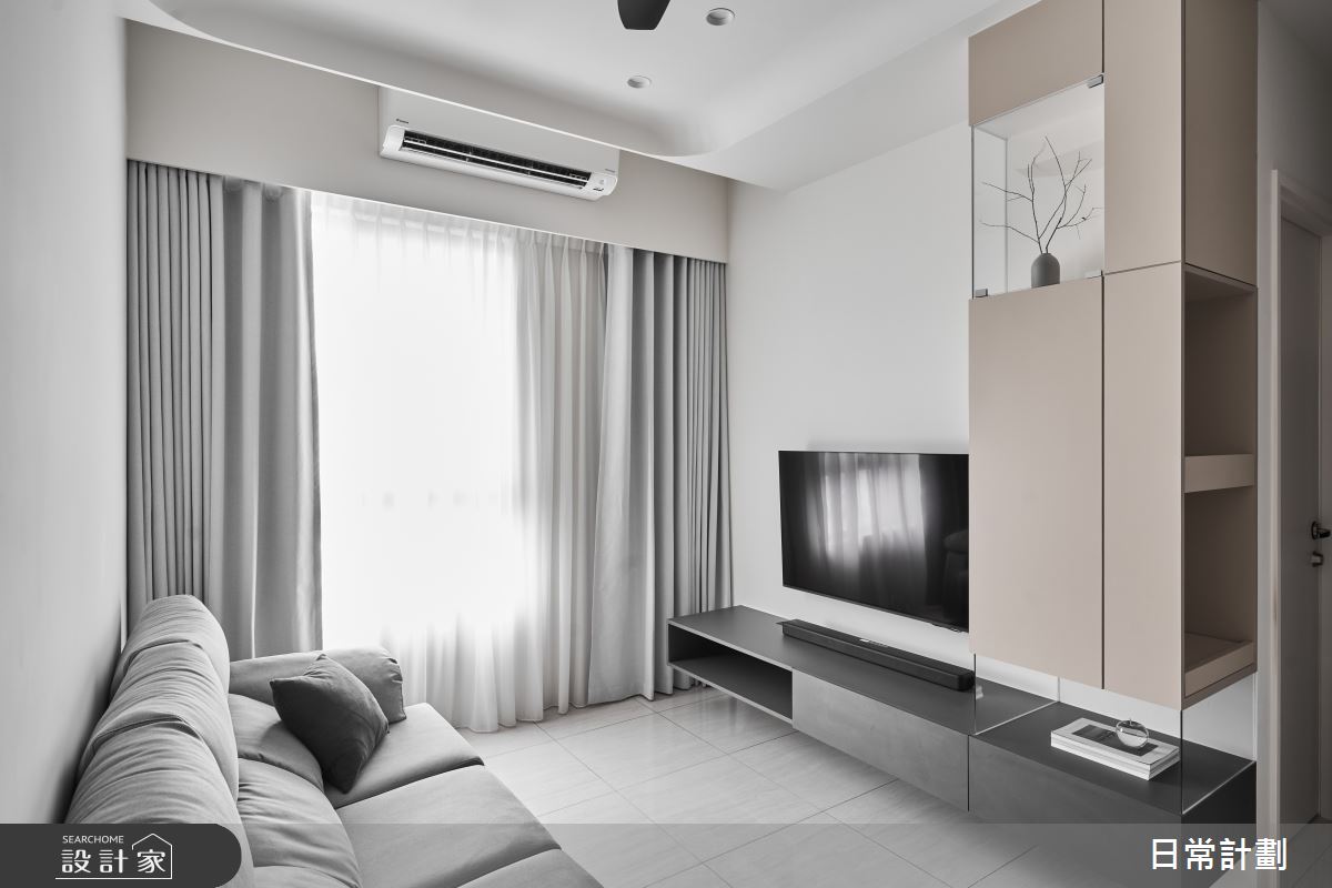 由日常計劃空間設計精心規劃的18坪兩房住宅空間,家庭成員一共有2位大人、1位小孩。因應屋主需求,設計師運用現代風作為主軸,搭配乳膠漆、超耐磨木地板、石英磚/拋光石英磚、木作貼皮、系統板材、繃布、噴漆、氟酸玻璃,打造全家人的夢想家居。