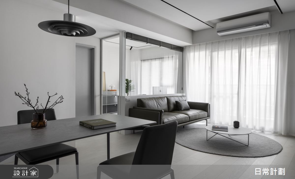 來自日常計劃空間設計的18坪簡約風住宅案,屋主一家人共有3位大人,是一間單層預售屋的三房格局,設計師藉由建材以乳膠漆、超耐磨木地板、鐵件、烤玻、木作貼皮、系統板材、樂土、噴漆的搭配應用,實現一家人的理想生活。