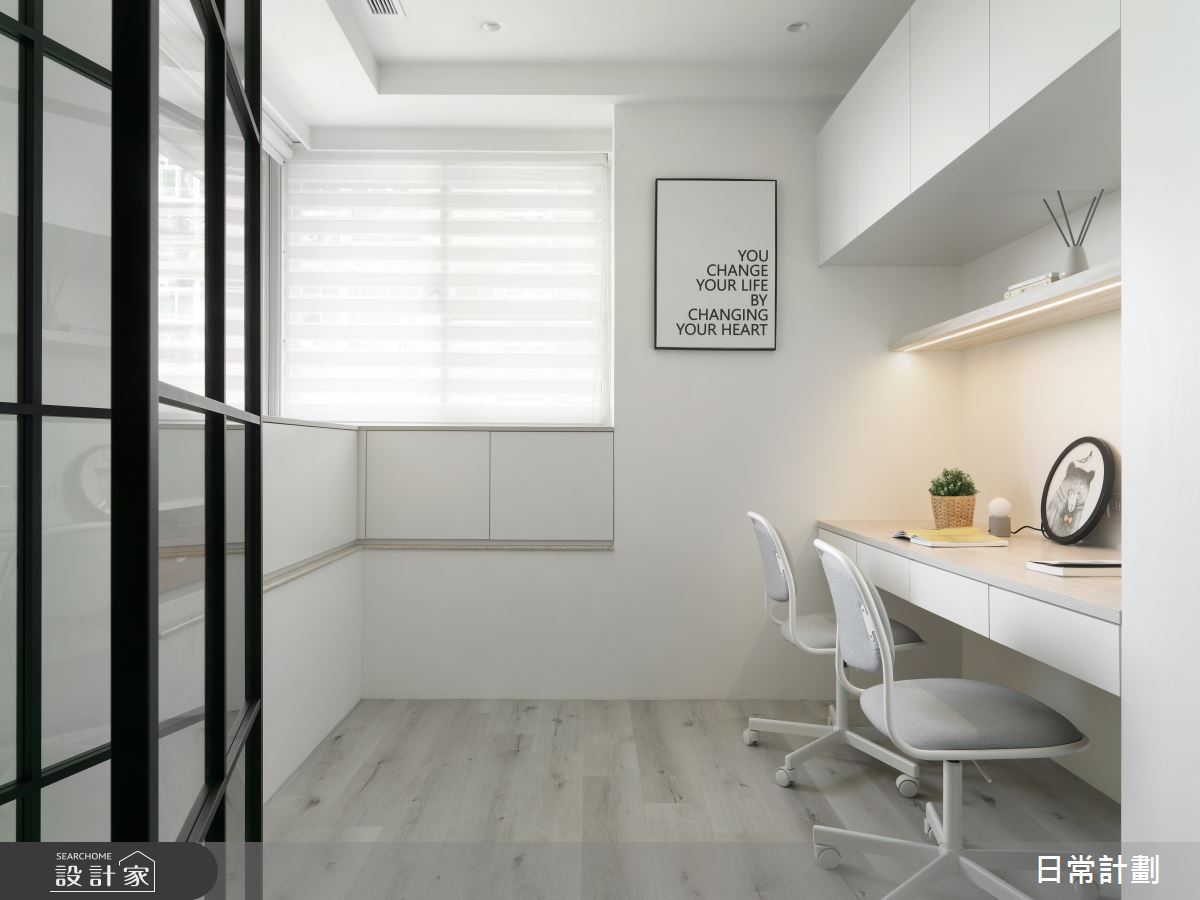 本案為日常計劃空間設計的22坪北歐風中古屋(5~15年)設計作品,格局為單層三房的居住空間。居住成員包含2位大人、1位小孩。全室建材的搭配,應用系統櫃、鋁框、玻璃、六角磚、石塑地板、乳膠漆,展現溫馨的居家氛圍。