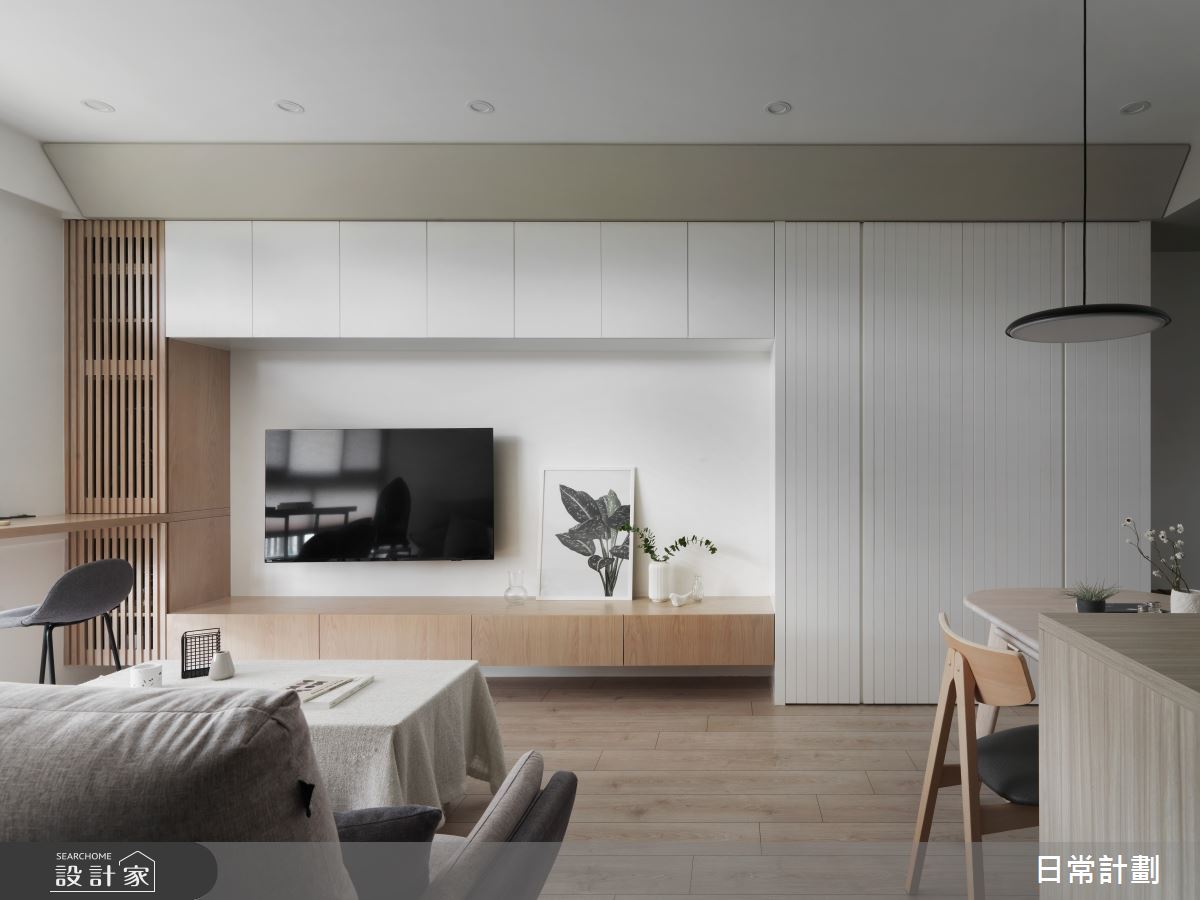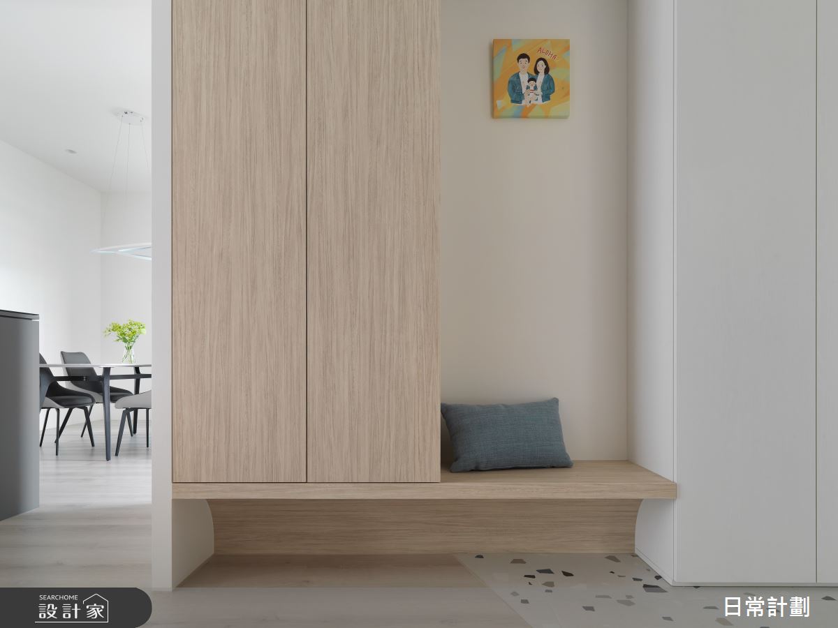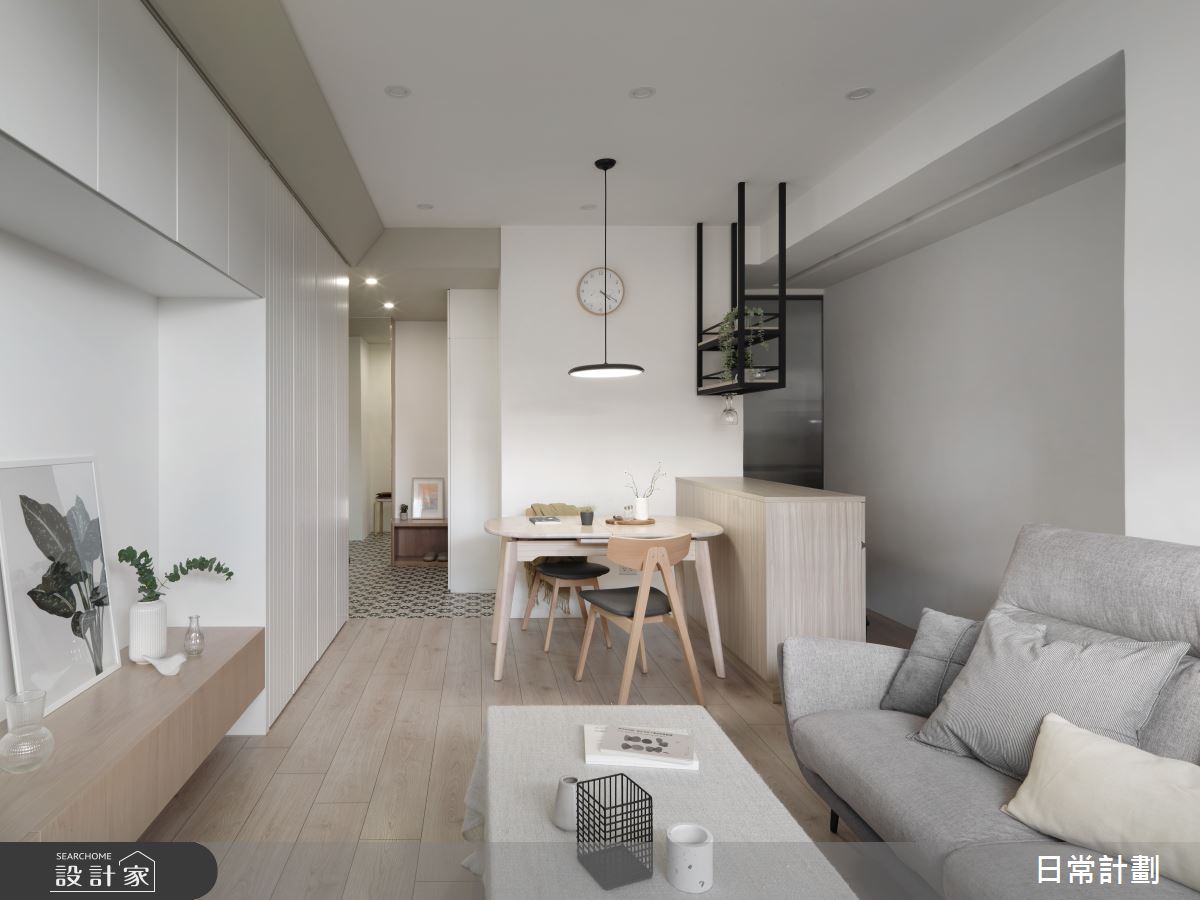 來自日常計劃空間設計的20坪簡約風住宅案,屋主一家人共有2位大人、2位小孩,是一間單層新成屋(5年以下)的三房格局,設計師藉由建材以系統板、實木貼皮、花磚、超耐磨木地板、訂製鐵件、乳膠漆的搭配應用,實現一家人的理想生活。