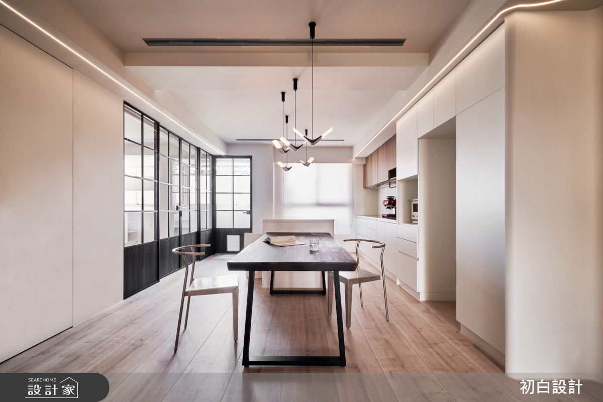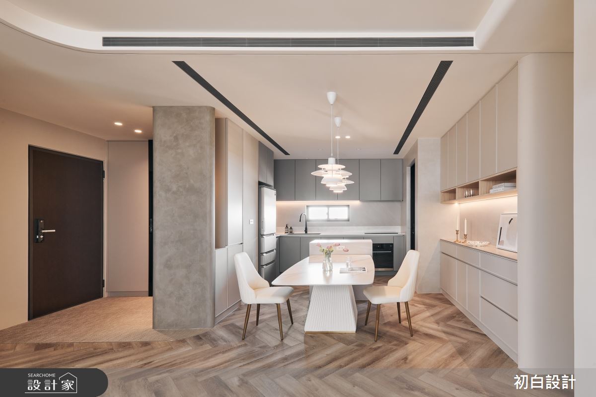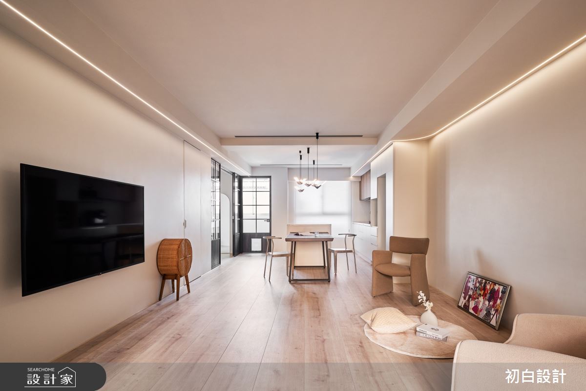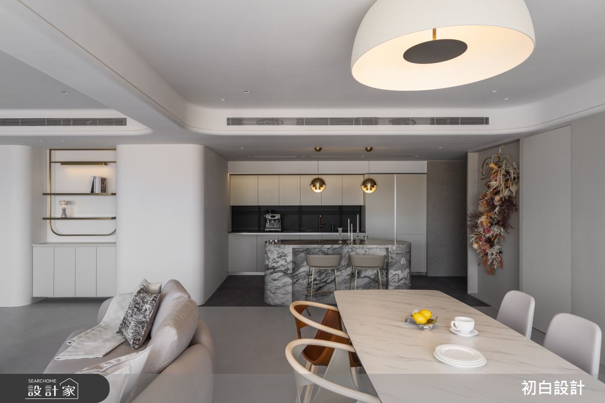 來自初白設計的75坪簡約風住宅案,屋主一家人共有2位大人、1位小孩,是一間單層新成屋(5年以下)的四房格局,設計師藉由建材以乳膠漆、系統板材、大理石、鐵件、特殊光源、進口瓷磚、訂製家具、礦物地板塗料的搭配應用,實現一家人的理想生活。