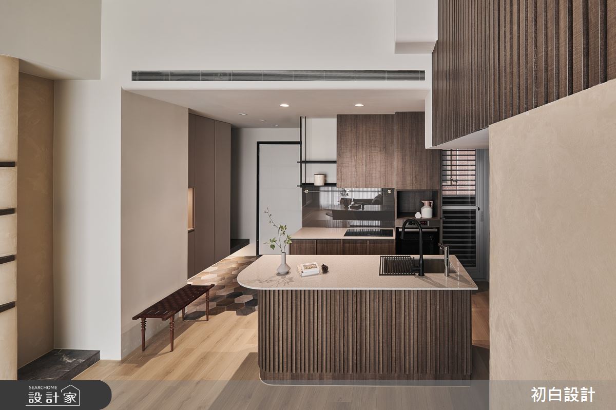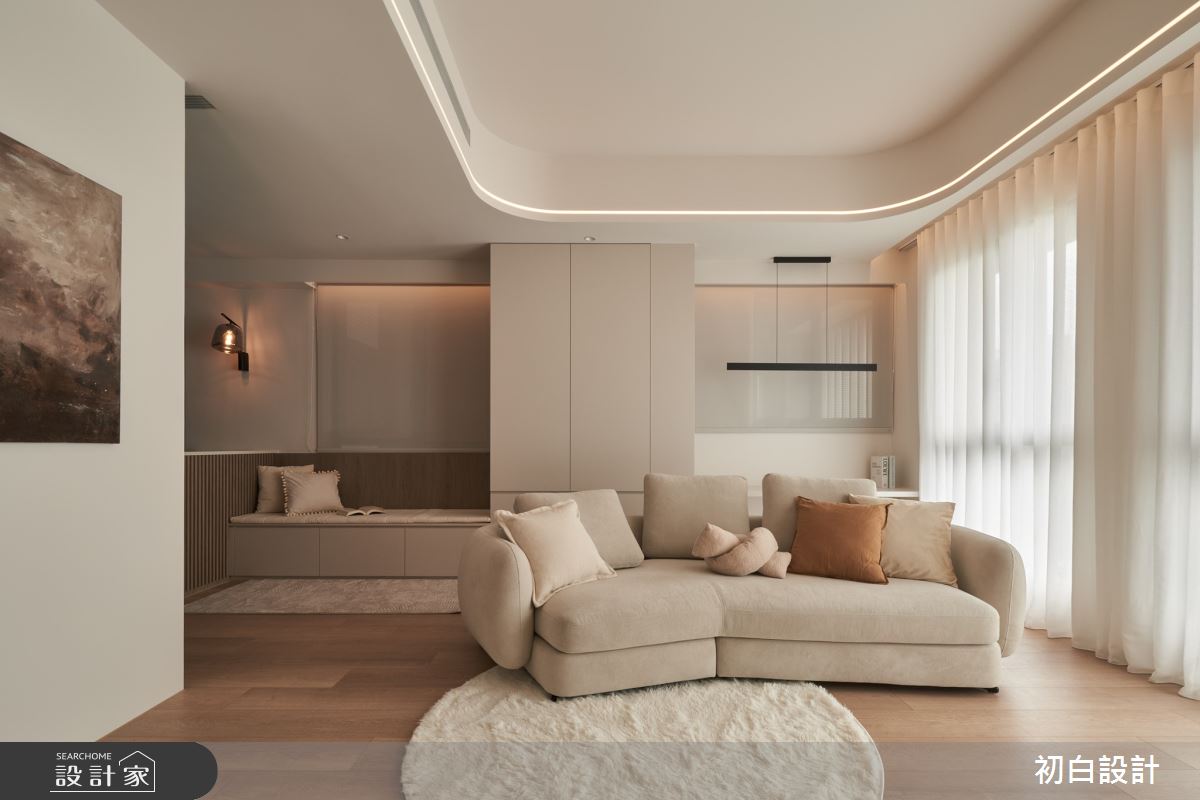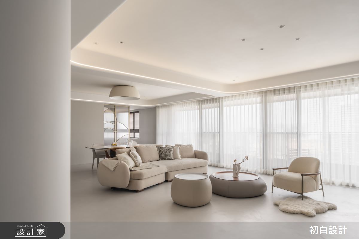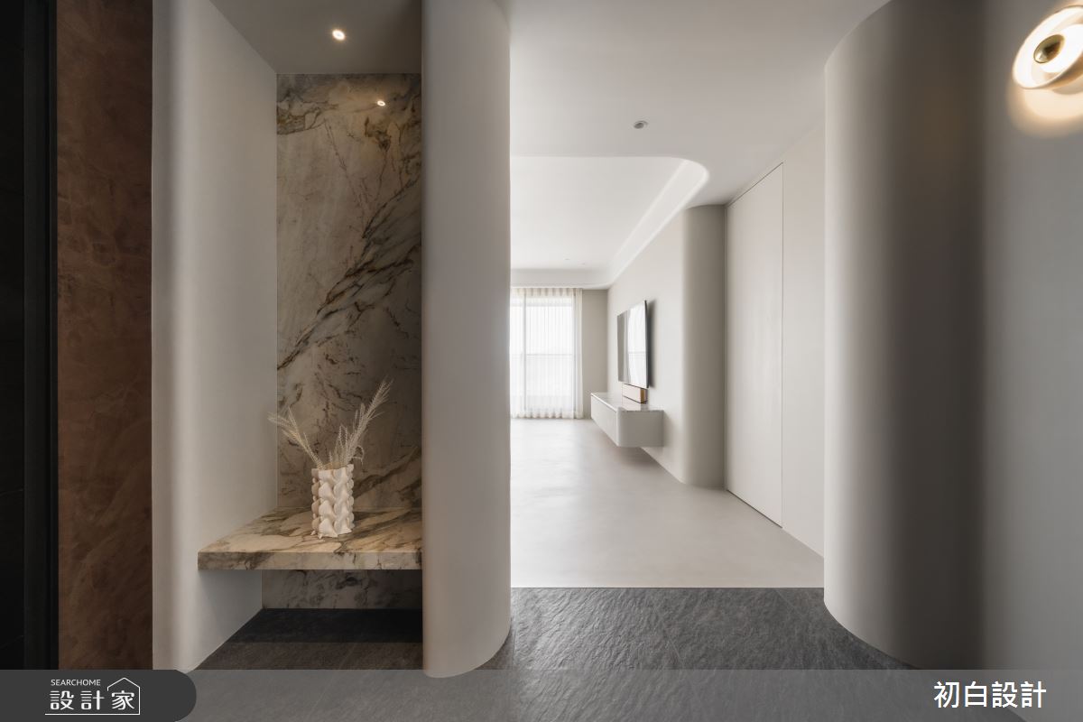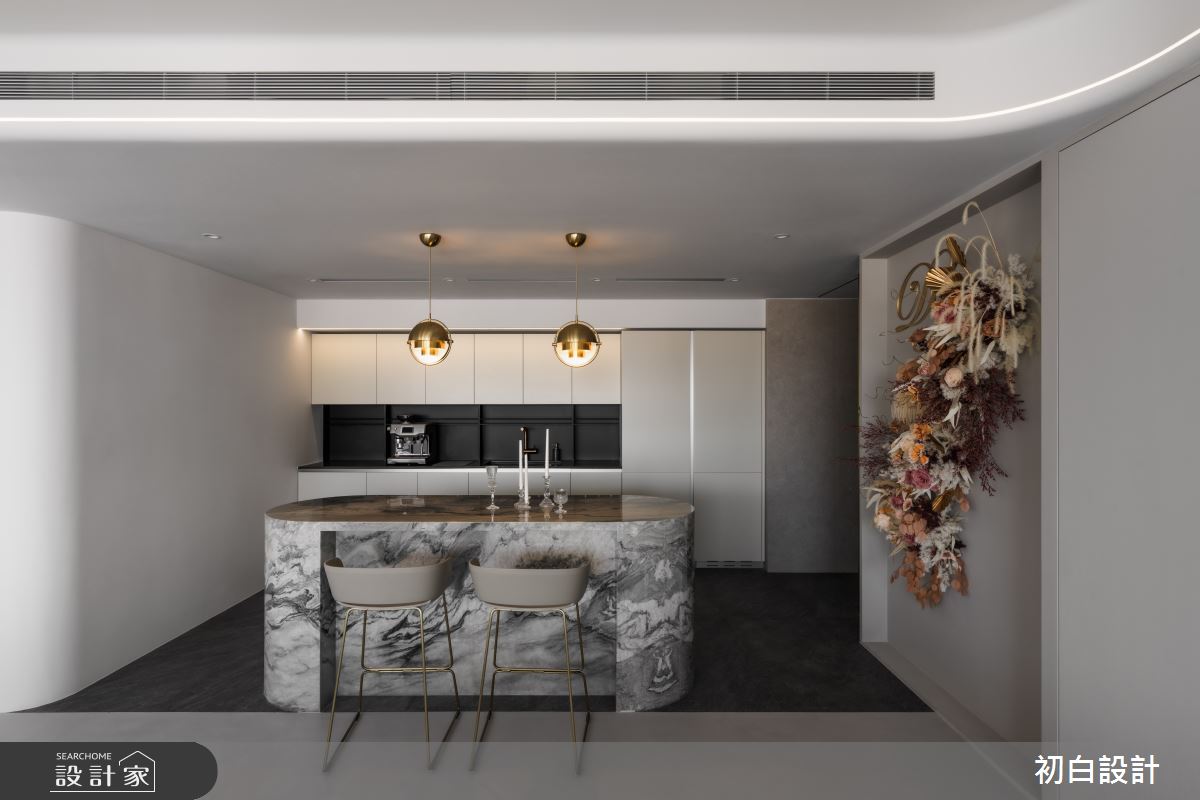 來自初白設計的75坪簡約風住宅案,屋主一家人共有2位大人、1位小孩,是一間單層新成屋(5年以下)的四房格局,設計師藉由建材以乳膠漆、系統板材、大理石、鐵件、特殊光源、進口瓷磚、訂製家具、礦物地板塗料的搭配應用,實現一家人的理想生活。
