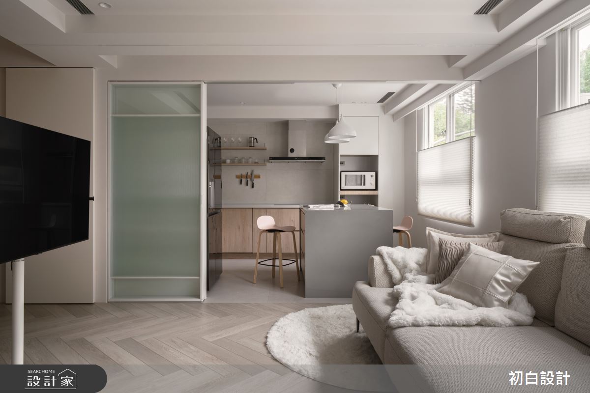 本案為初白設計的21坪現代風新成屋(5年以下)設計作品,格局為單層兩房的居住空間。居住成員包含2位大人。全室建材的搭配,應用油漆、大理石、磁磚、特殊光源、進口瓷磚,展現溫馨的居家氛圍。
