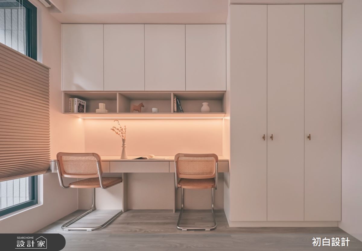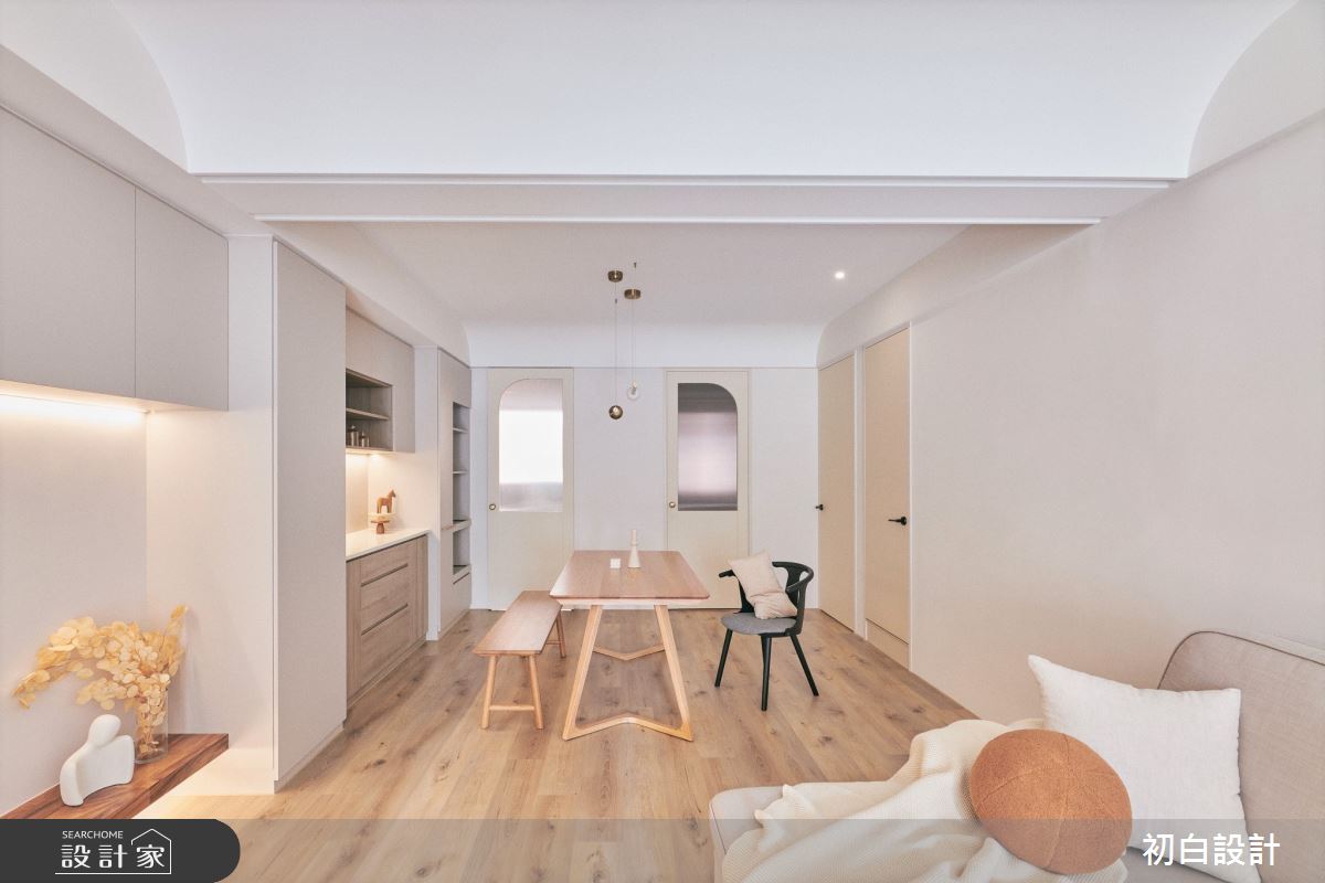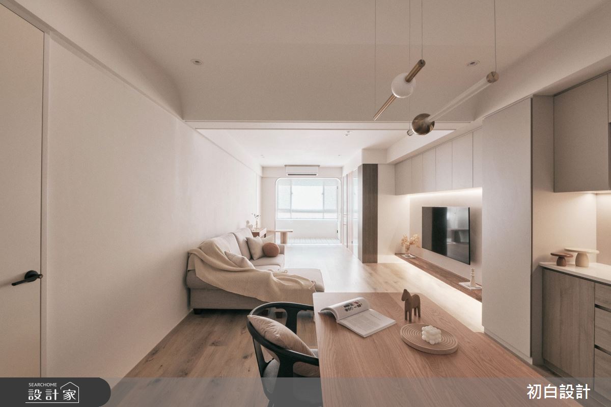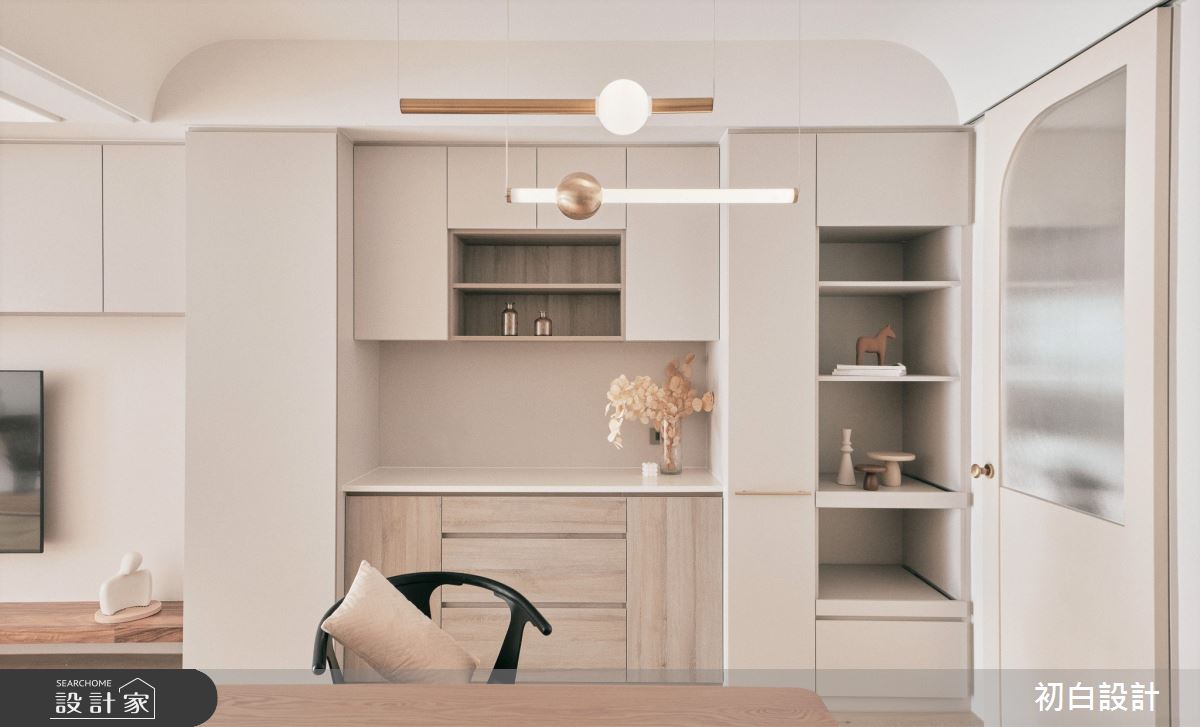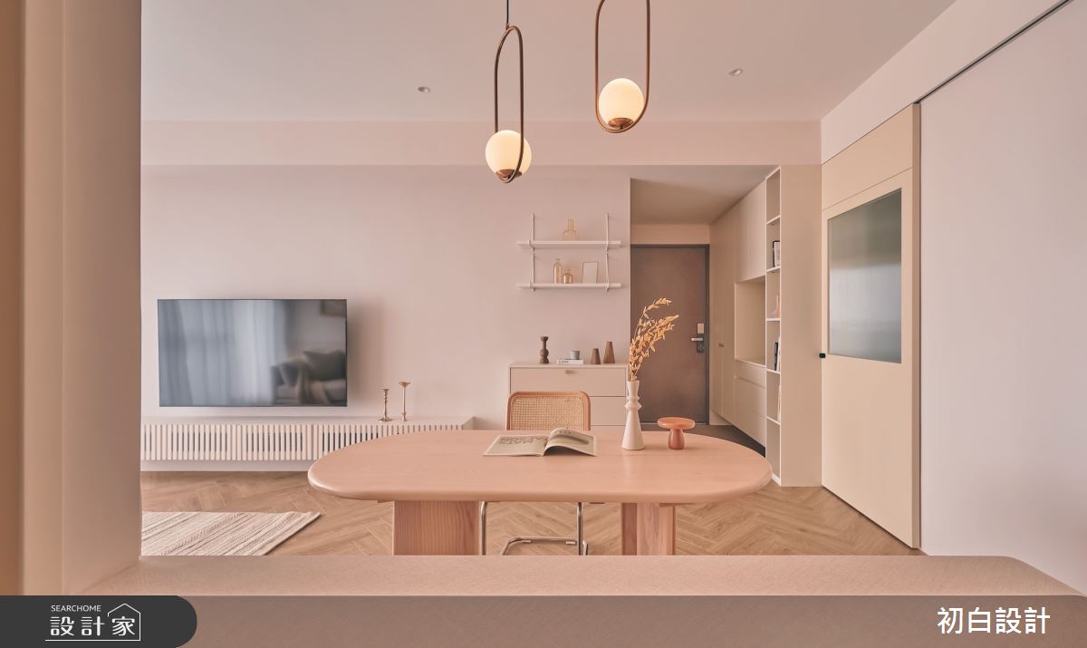 由初白設計精心規劃的18坪三房住宅空間,家庭成員一共有2位大人。因應屋主需求,設計師運用現代風作為主軸,搭配木地板、格柵、木作、系統櫃、特殊漆,打造全家人的夢想家居。