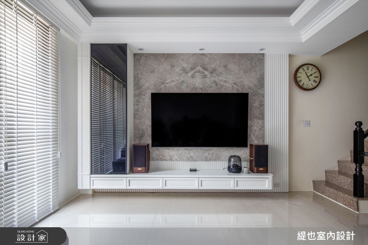 本案為緹也室內設計的60坪新古典新成屋(5年以下)設計作品,格局為透天別墅五房的居住空間。居住成員包含1位大人、2位小孩、1位長輩。全室建材的搭配,應用乳膠漆、石英磚/拋光石英磚、木作貼皮、烤漆、系統板材、大理石、木百葉、人造石、賽麗石、線板、噴漆,展現溫馨的居家氛圍。
