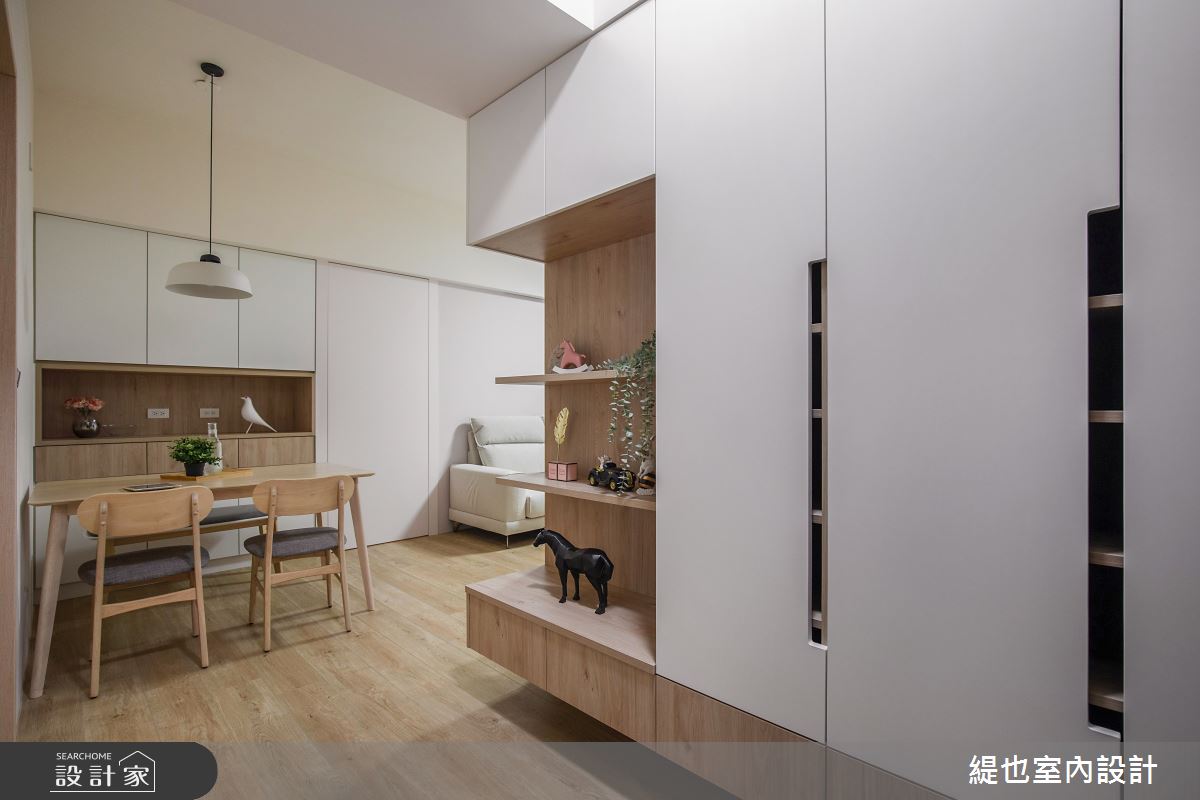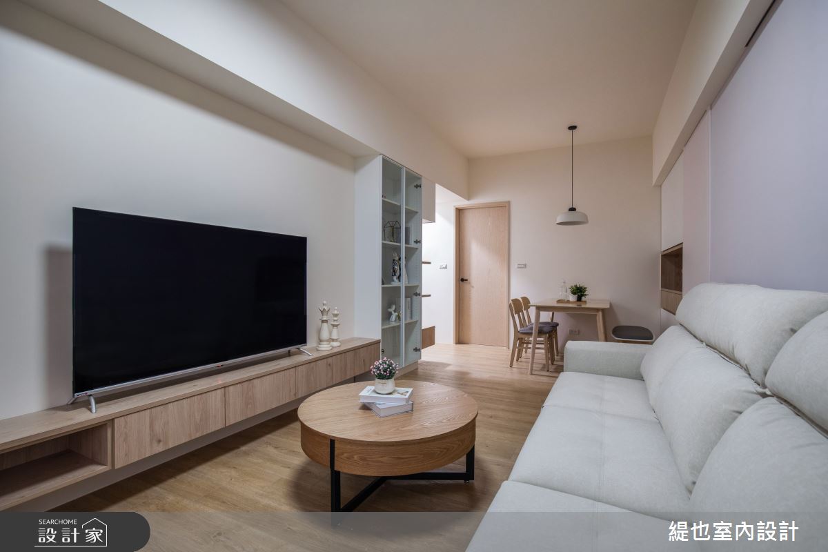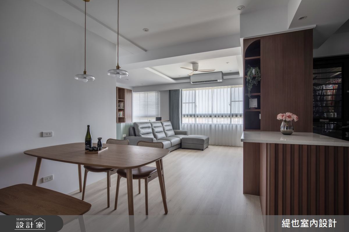緹也室內設計以系統櫃、乳膠漆、木地板的搭配應用,呈現北歐風居家氛圍,將此間22坪、三房、單層、新成屋(5年以下)打造成舒適愜意的家庭空間,完成2位大人全家人的夢想之居。