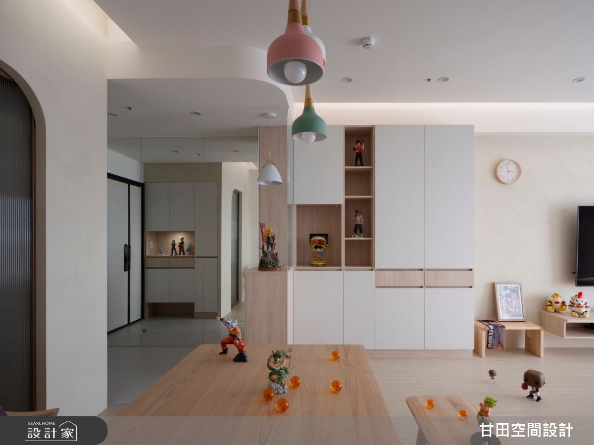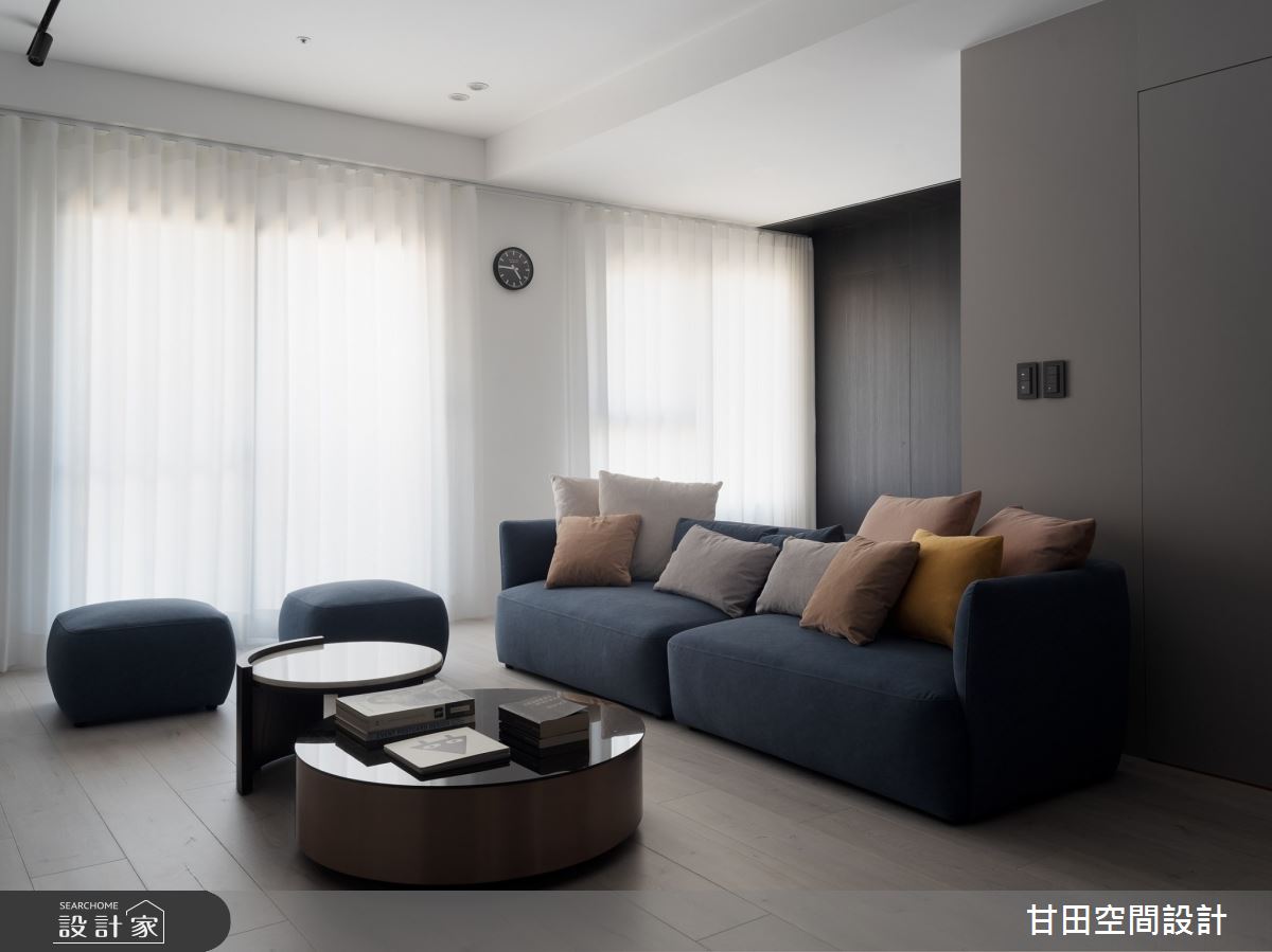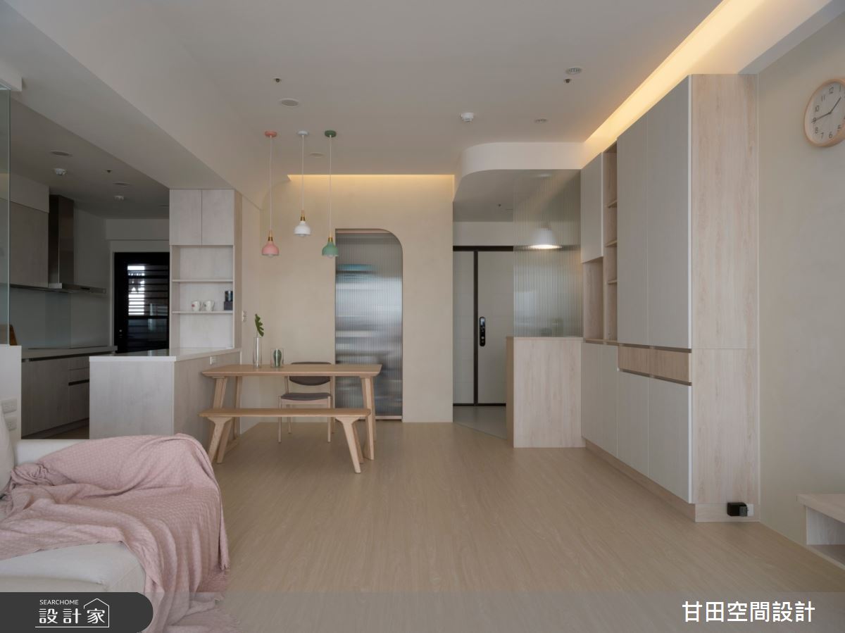 由甘田空間設計精心規劃的30坪三房住宅空間,家庭成員一共有2位大人、2位小孩。因應屋主需求,設計師運用現代風作為主軸,搭配油漆、乳膠漆、超耐磨木地板、石英磚/拋光石英磚、大理石、軌道燈、吸磁軌道燈、清水模、鋁槽燈、燈條,打造全家人的夢想家居。