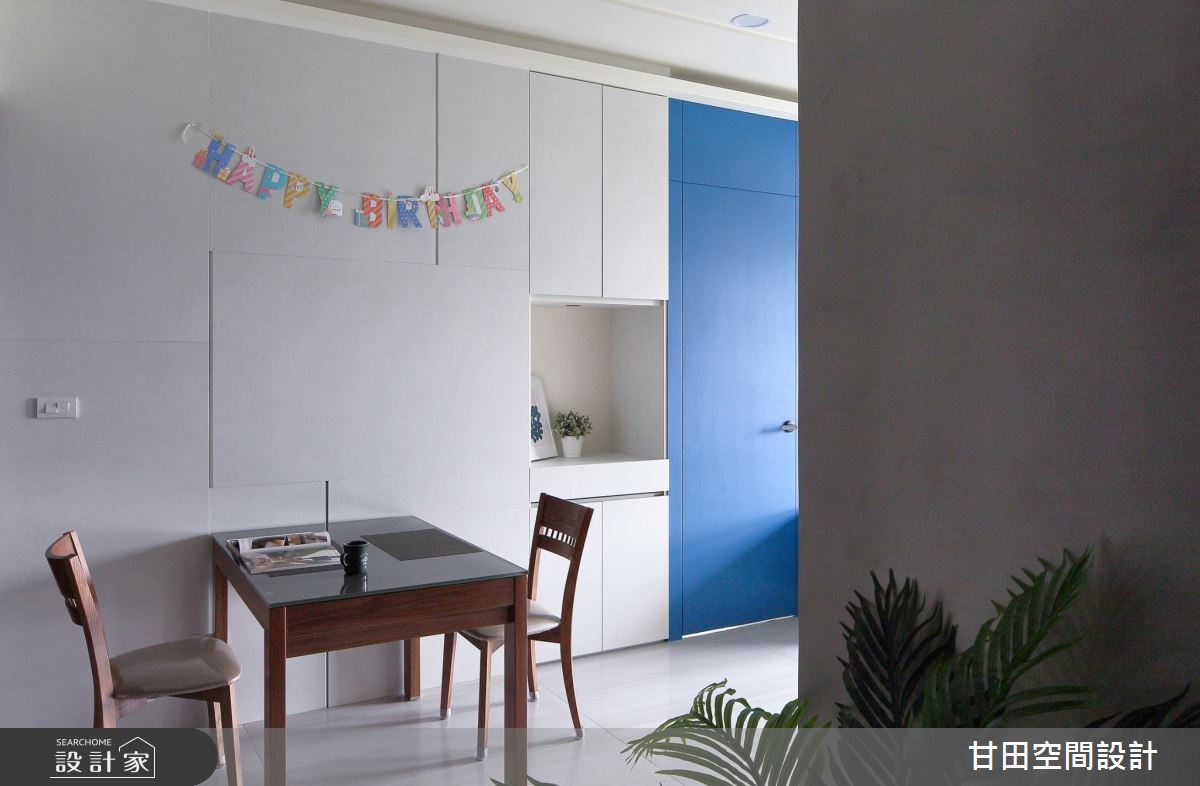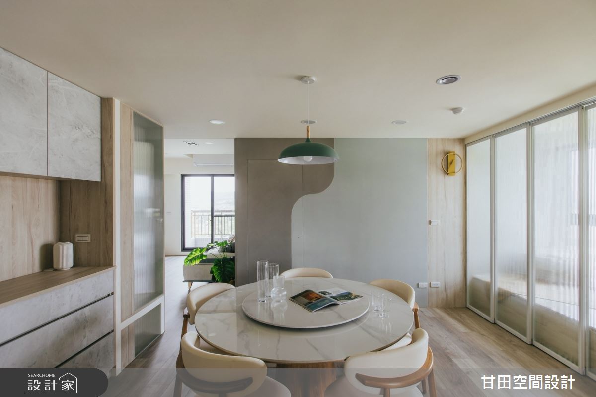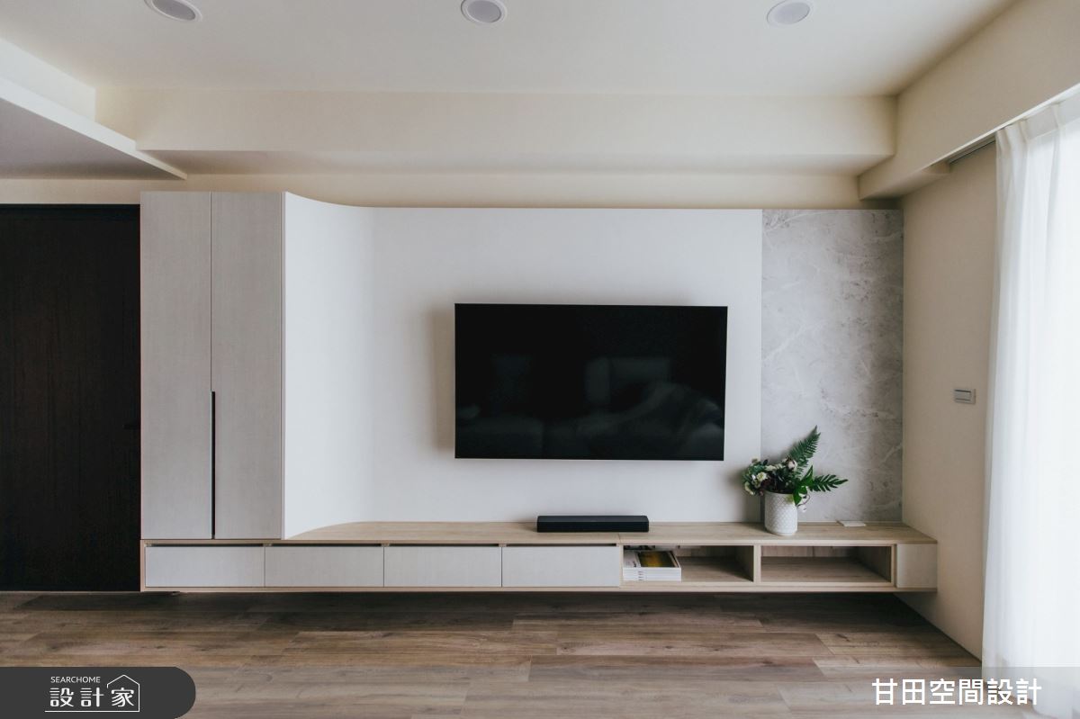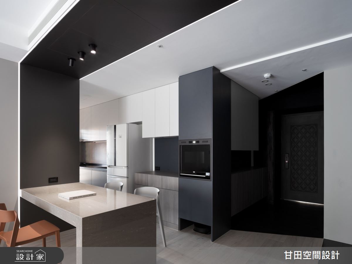 由甘田空間設計精心規劃的30坪三房住宅空間,家庭成員一共有2位大人、2位小孩。因應屋主需求,設計師運用現代風作為主軸,搭配油漆、乳膠漆、超耐磨木地板、石英磚/拋光石英磚、大理石、軌道燈、吸磁軌道燈、清水模、鋁槽燈、燈條,打造全家人的夢想家居。