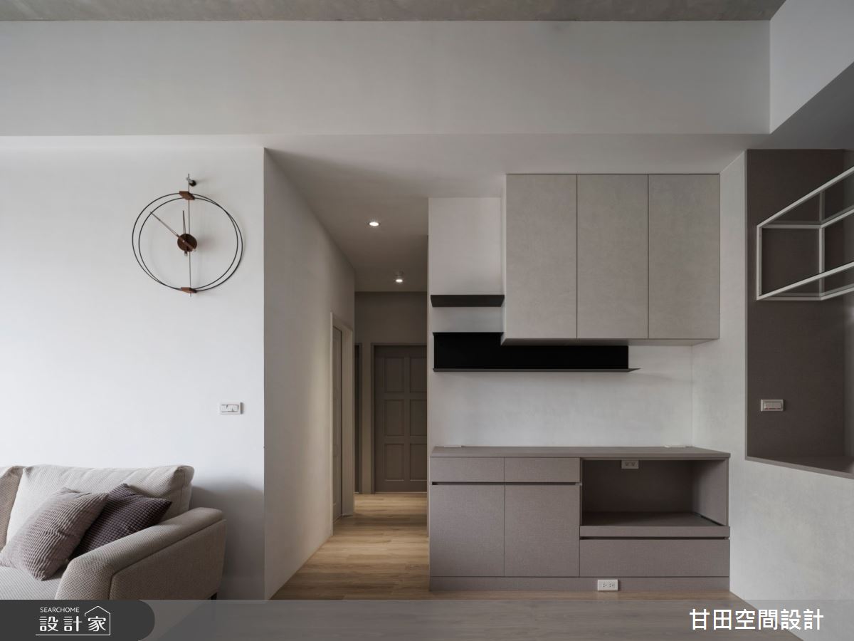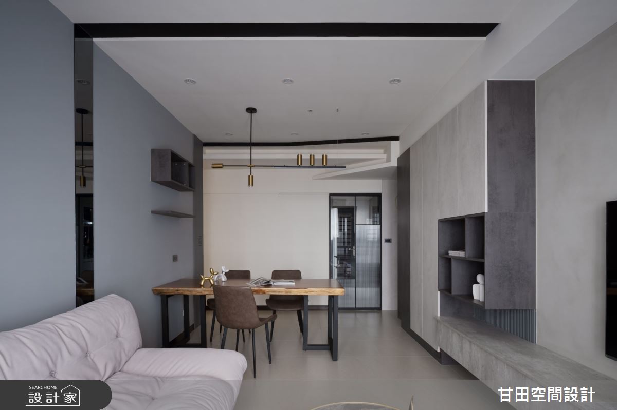 由甘田空間設計精心規劃的25坪三房住宅空間,家庭成員一共有2位大人。因應屋主需求,設計師運用現代風作為主軸,搭配油漆、木紋磚、鐵件、木作貼皮、烤漆、系統板材、磁磚、軌道燈、噴漆、仿清水模塗料,打造全家人的夢想家居。