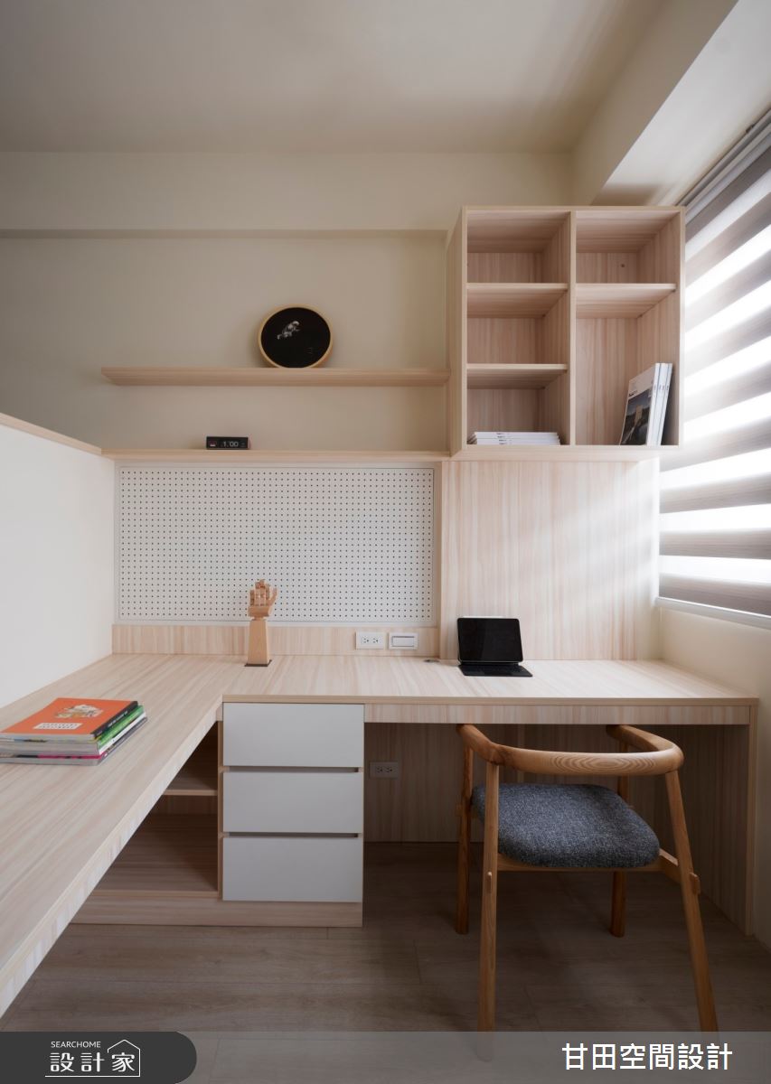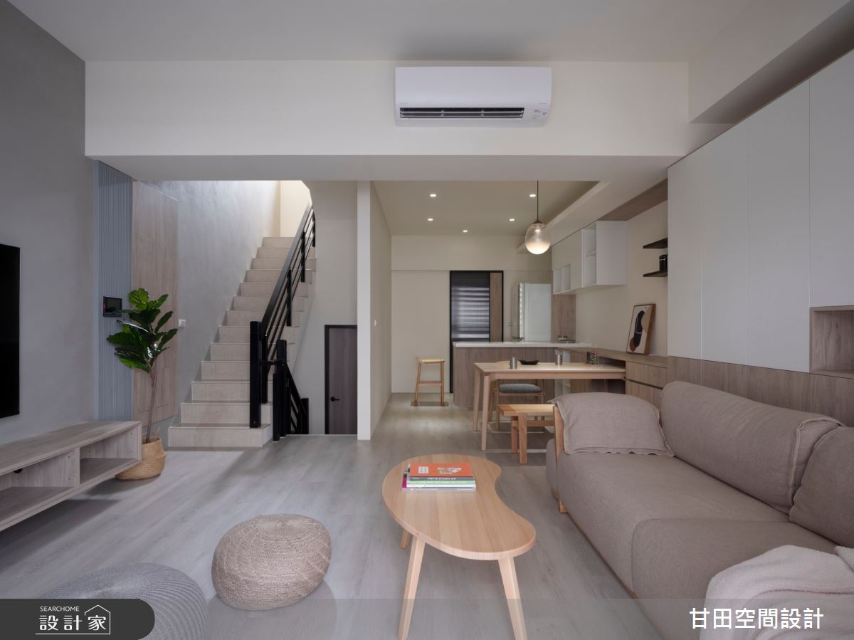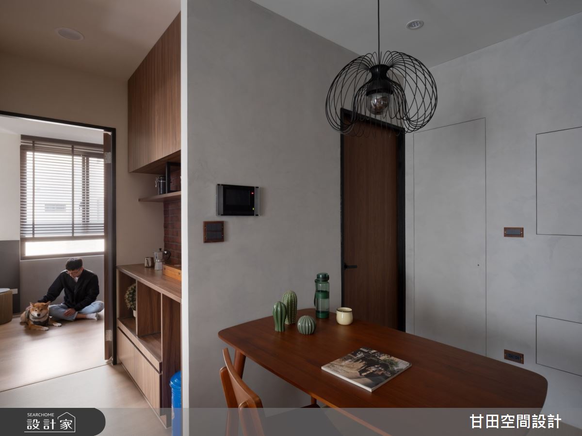 來自甘田空間設計的22坪日式無印風住宅案,屋主一家人共有2位大人,是一間單層新成屋(5年以下)的兩房格局,設計師藉由建材以油漆、乳膠漆、超耐磨木地板、不鏽鋼、木作貼皮、鋼刷木皮、軌道燈、仿清水模塗料、線燈、木格柵、磁吸軌道的搭配應用,實現一家人的理想生活。