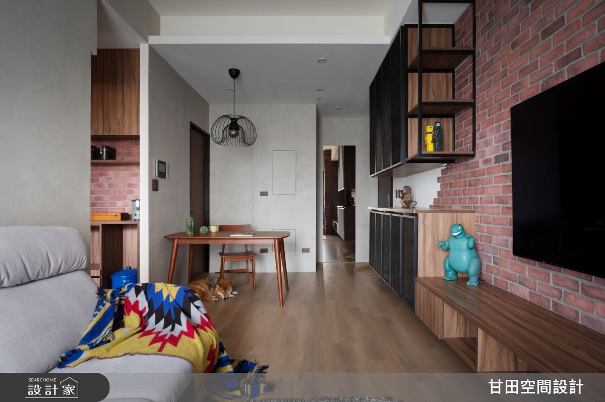 由甘田空間設計精心規劃的20.5坪三房住宅空間,家庭成員一共有2位大人。因應屋主需求,設計師運用工業風作為主軸,搭配文化石、木地板、鐵件、灰鏡、系統板材、軌道燈、清水模塗料,打造全家人的夢想家居。