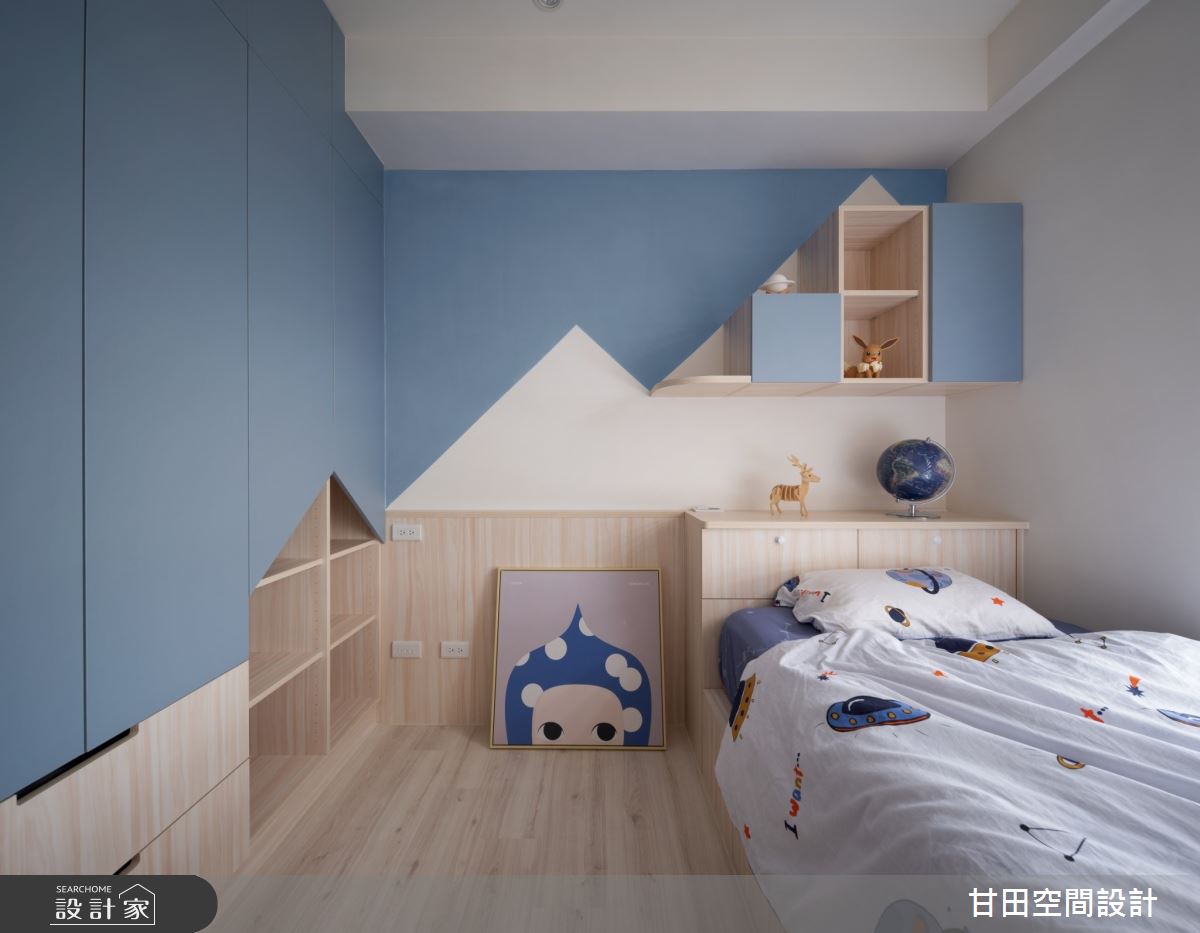甘田空間設計以油漆、超耐磨木地板、系統板材的搭配應用,呈現混搭風居家氛圍,將此間27坪、四房、單層、新成屋(5年以下)打造成舒適愜意的家庭空間,完成2位大人、2位小孩全家人的夢想之居。