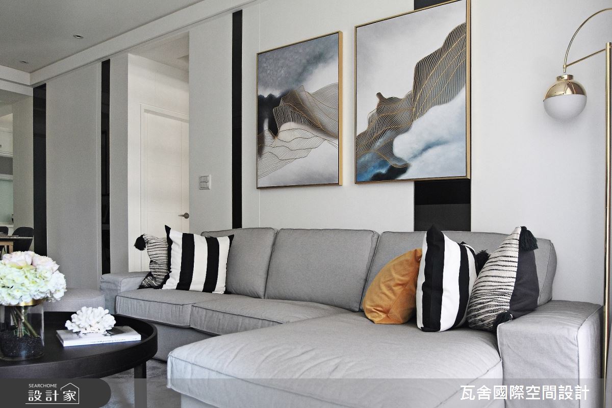 來自瓦舍國際空間設計的46坪現代風住宅案,是一間預售屋的三房格局,設計師藉由建材以壁紙、超耐磨木地板、烤玻、木作貼皮、鋼刷木皮、大理石、線板、黑玻的搭配應用,實現一家人的理想生活。