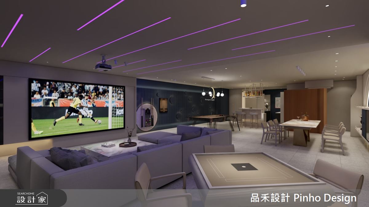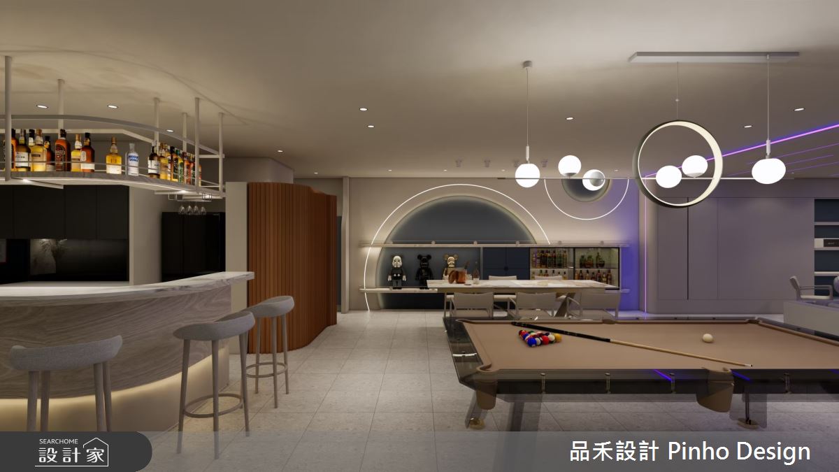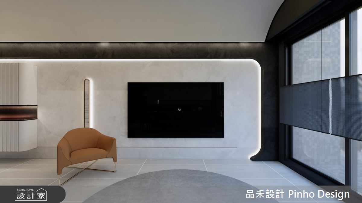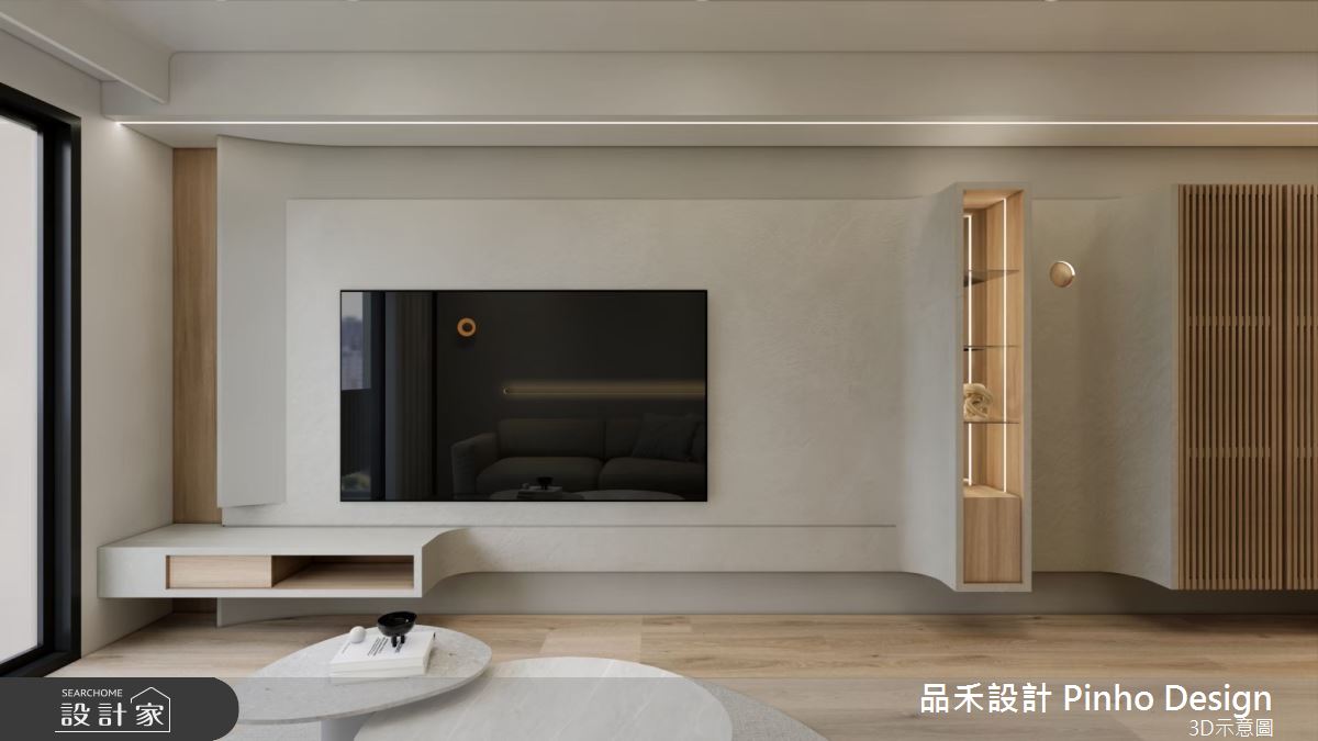 品禾設計以鐵件、大理石、磁磚、藝術塗料、鍍鈦板、彎曲玻璃、手工木皮的搭配應用,呈現輕奢風居家氛圍,將此間60坪、四房、單層、新成屋(5年以下)打造成舒適愜意的家庭空間,完成全家人的夢想之居。