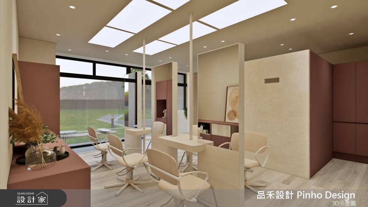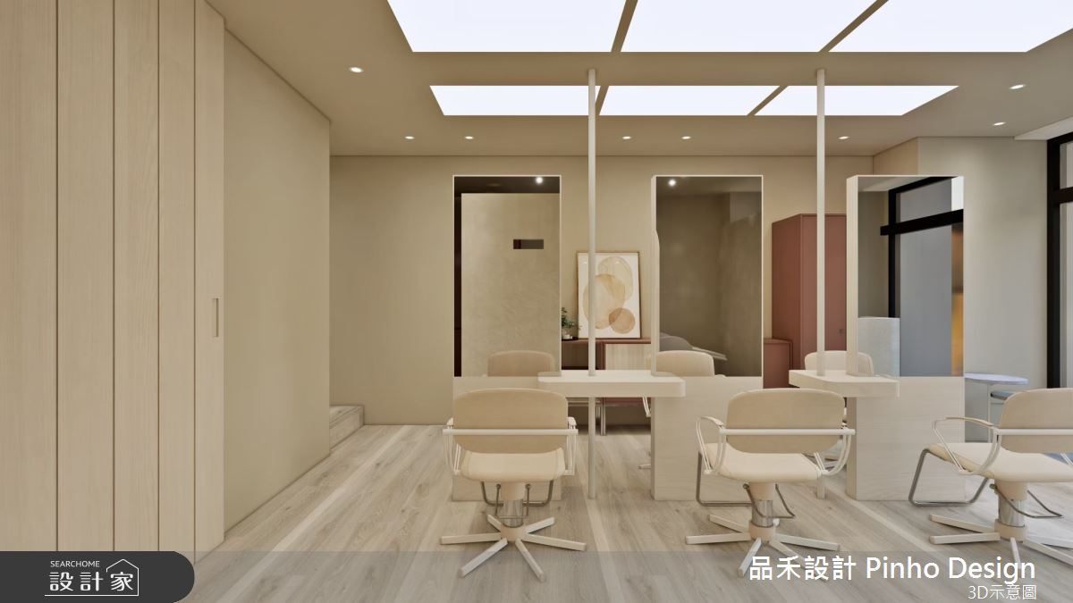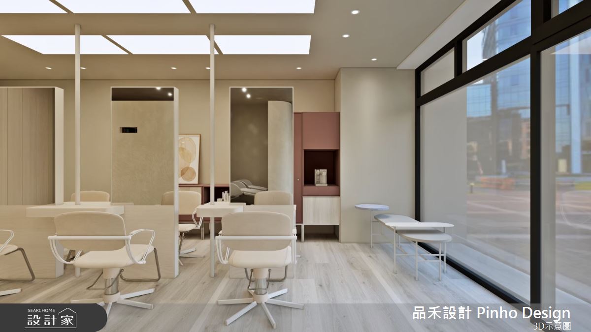 品禾設計以鐵件、灰鏡、系統板材、藝術塗料、塗裝木皮板、SPC地板的搭配應用,呈現簡約風的風格氣息,將此間50坪新成屋(5年以下)優雅詮釋成舒適愜意的商業空間。