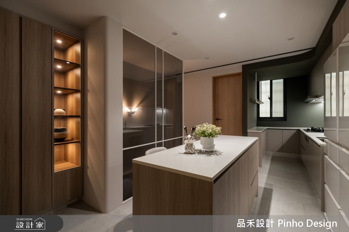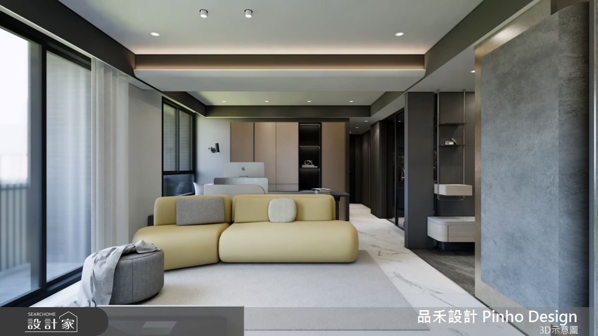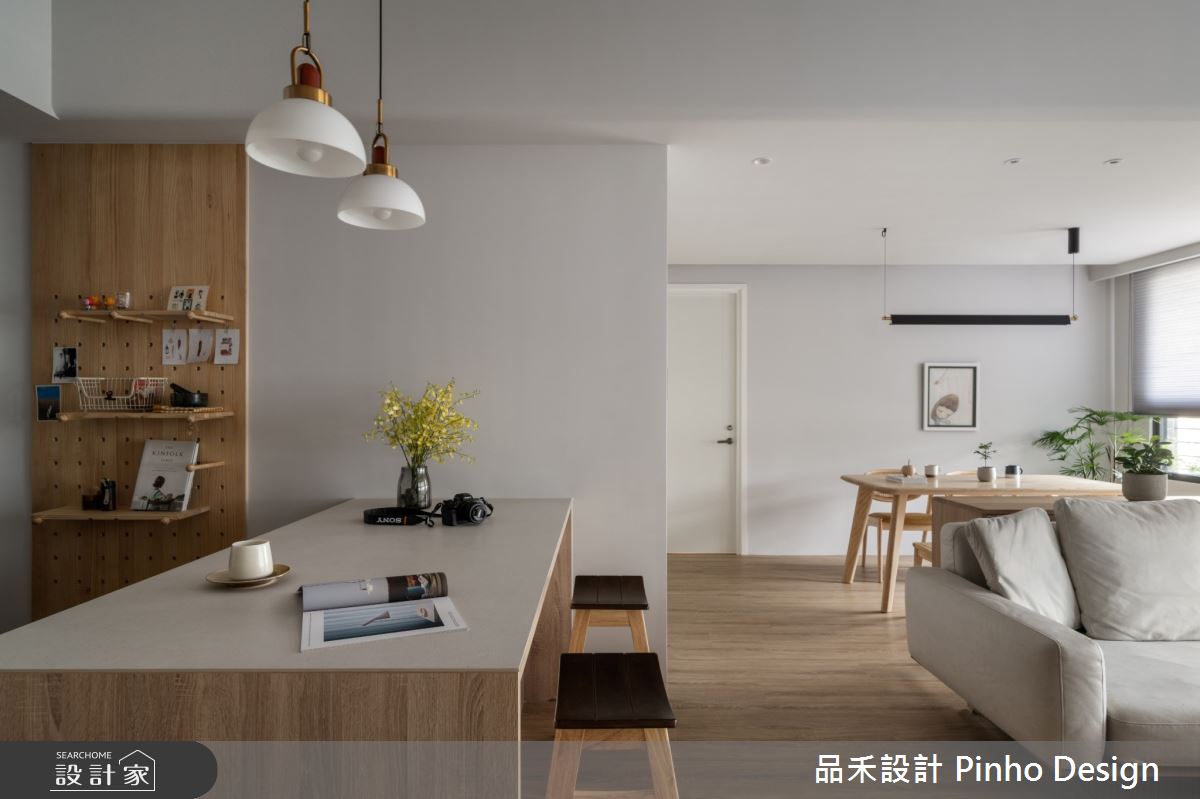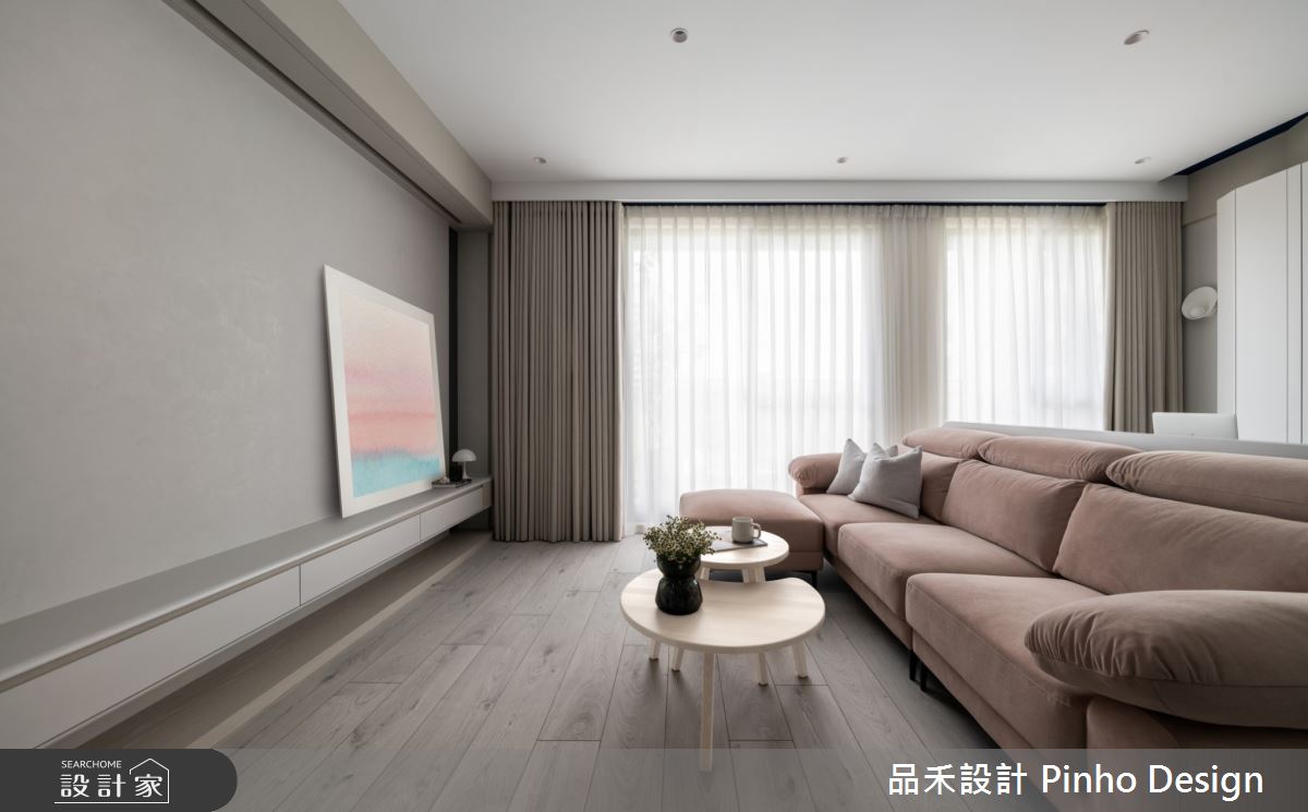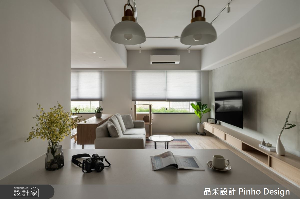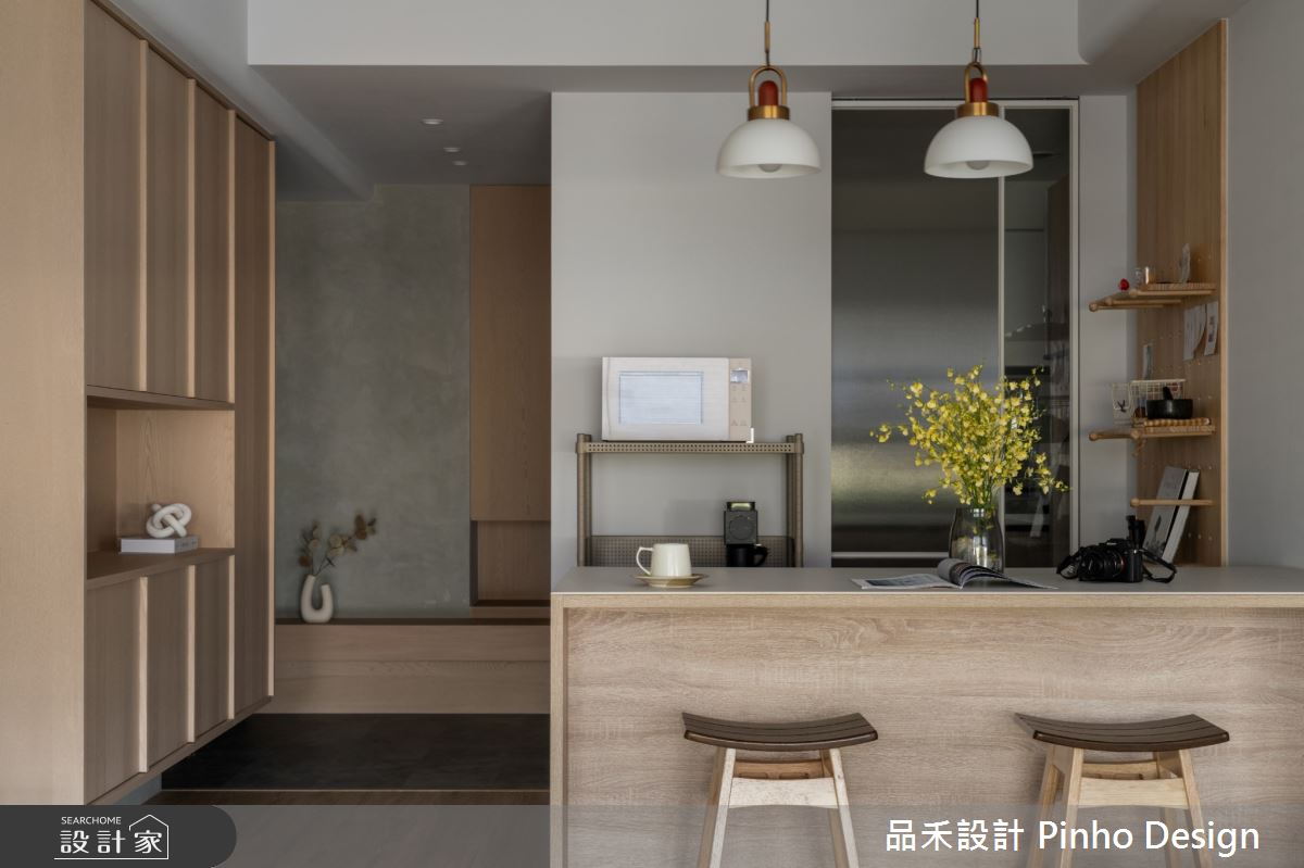 來自品禾設計的35坪現代風住宅案,是一間單層新成屋(5年以下)的兩房格局,設計師藉由建材以鐵件、系統板材、藝術塗料、手工木皮、玻璃的搭配應用,實現一家人的理想生活。