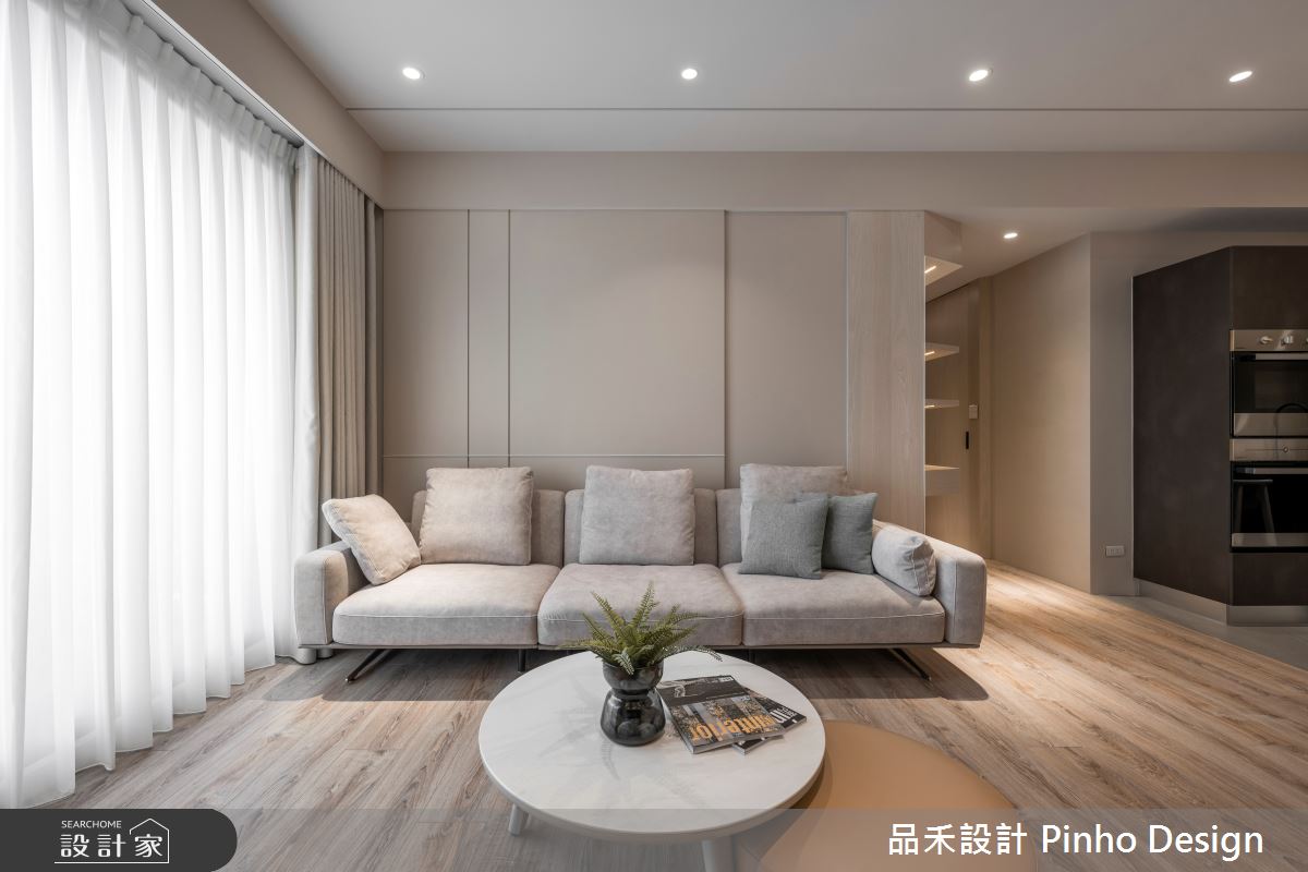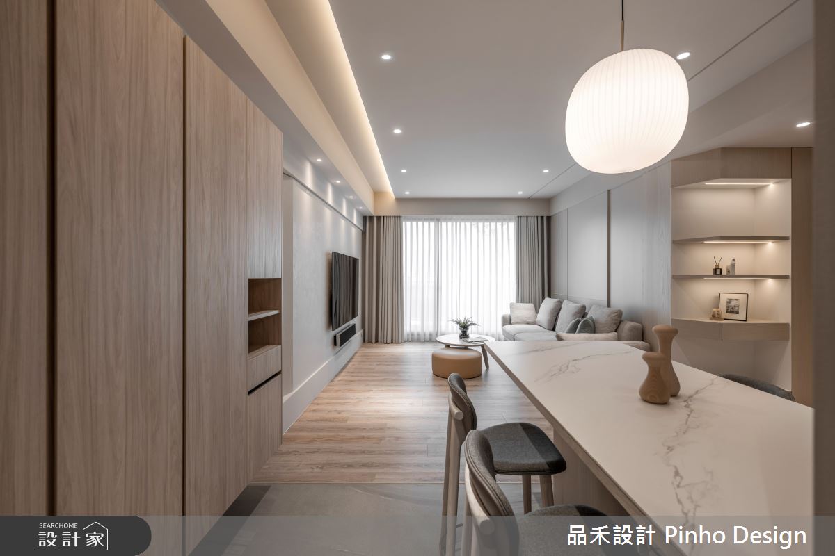品禾設計以乳膠漆、鐵件、木作貼皮、大理石的搭配應用,呈現北歐風居家氛圍,將此間27坪、三房、單層、新成屋(5年以下)打造成舒適愜意的家庭空間,完成全家人的夢想之居。