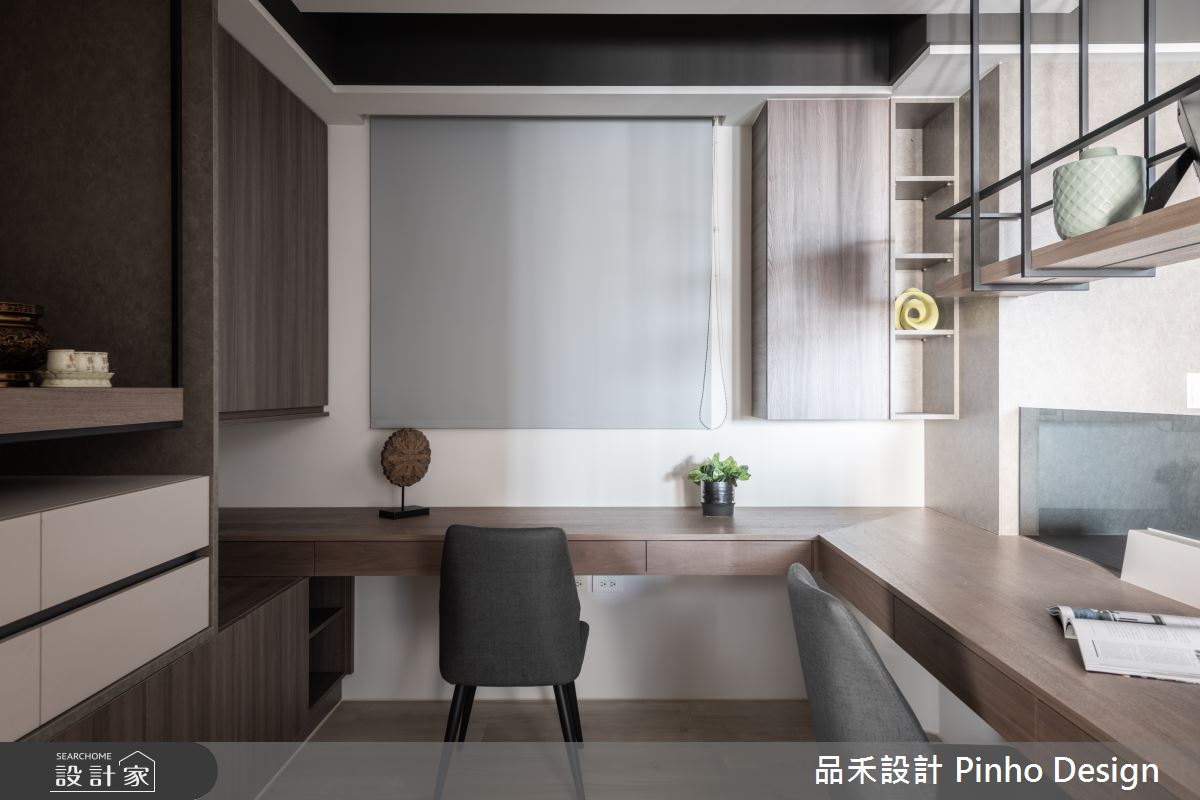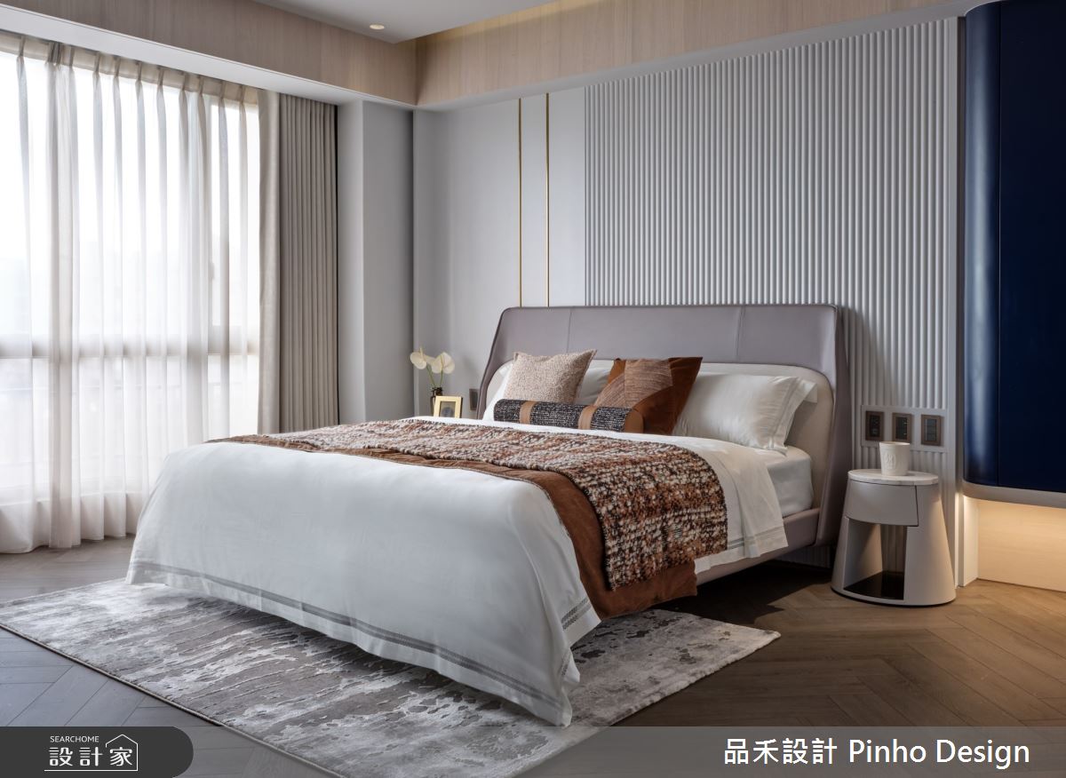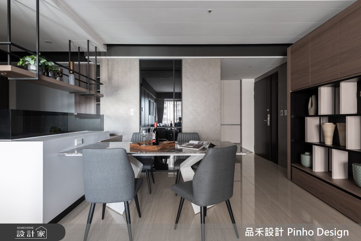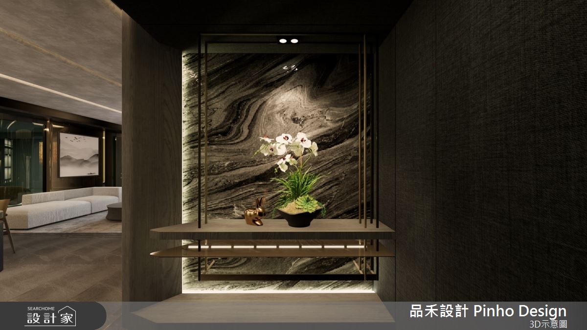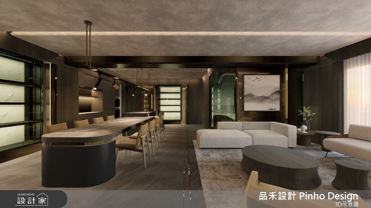 來自品禾設計的55坪奢華風住宅案,是一間單層毛胚屋的三房格局,設計師藉由建材以乳膠漆、石英磚/拋光石英磚、不鏽鋼、鐵件、灰鏡、烤玻、鍍鈦金屬、木作貼皮、烤漆、鋼刷木皮、系統板材、大理石、磁磚、賽麗石、石材的搭配應用,實現一家人的理想生活。