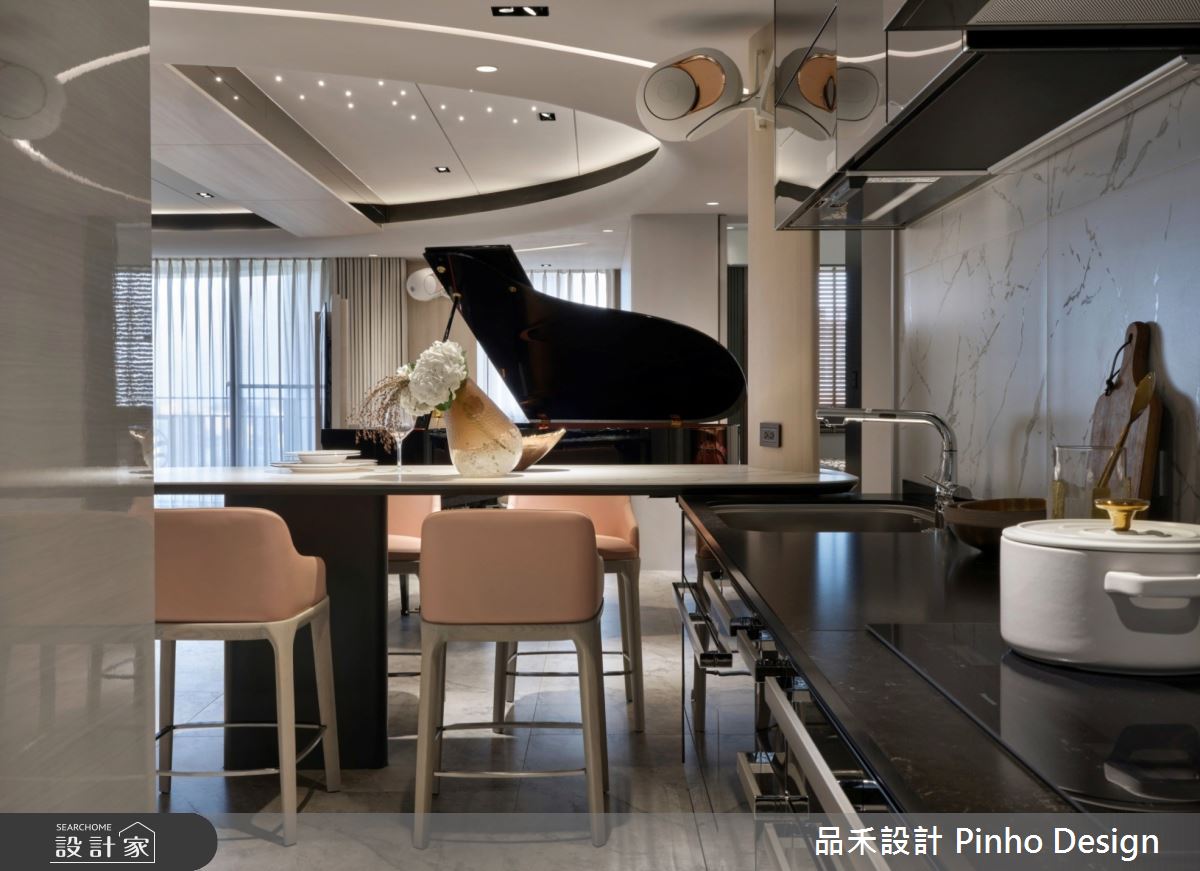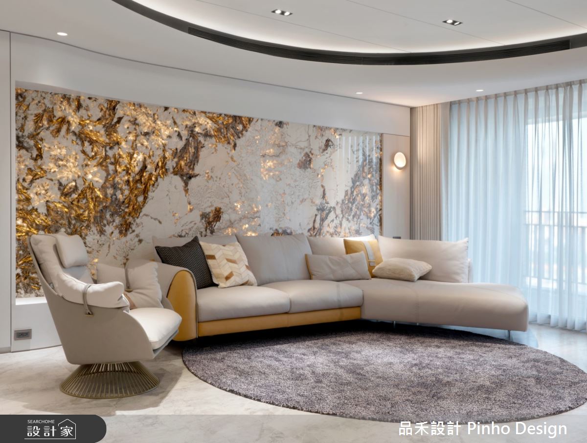 由品禾設計精心規劃的36坪四房住宅空間。因應屋主需求,設計師運用奢華風作為主軸,搭配大理石、木作貼皮、鍍鈦金屬、鐵件、乳膠漆,打造全家人的夢想家居。