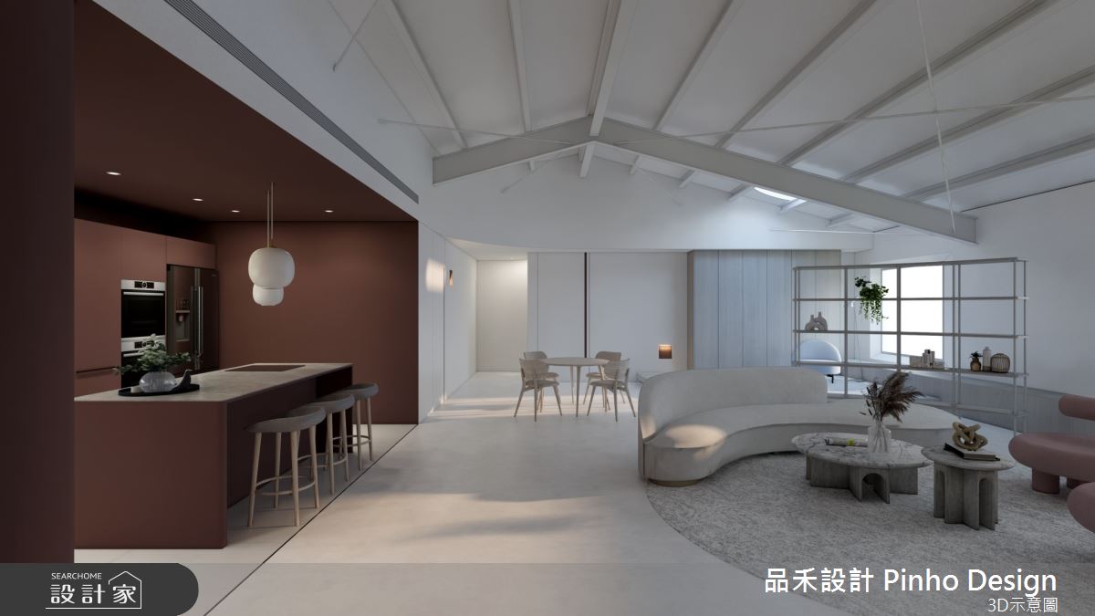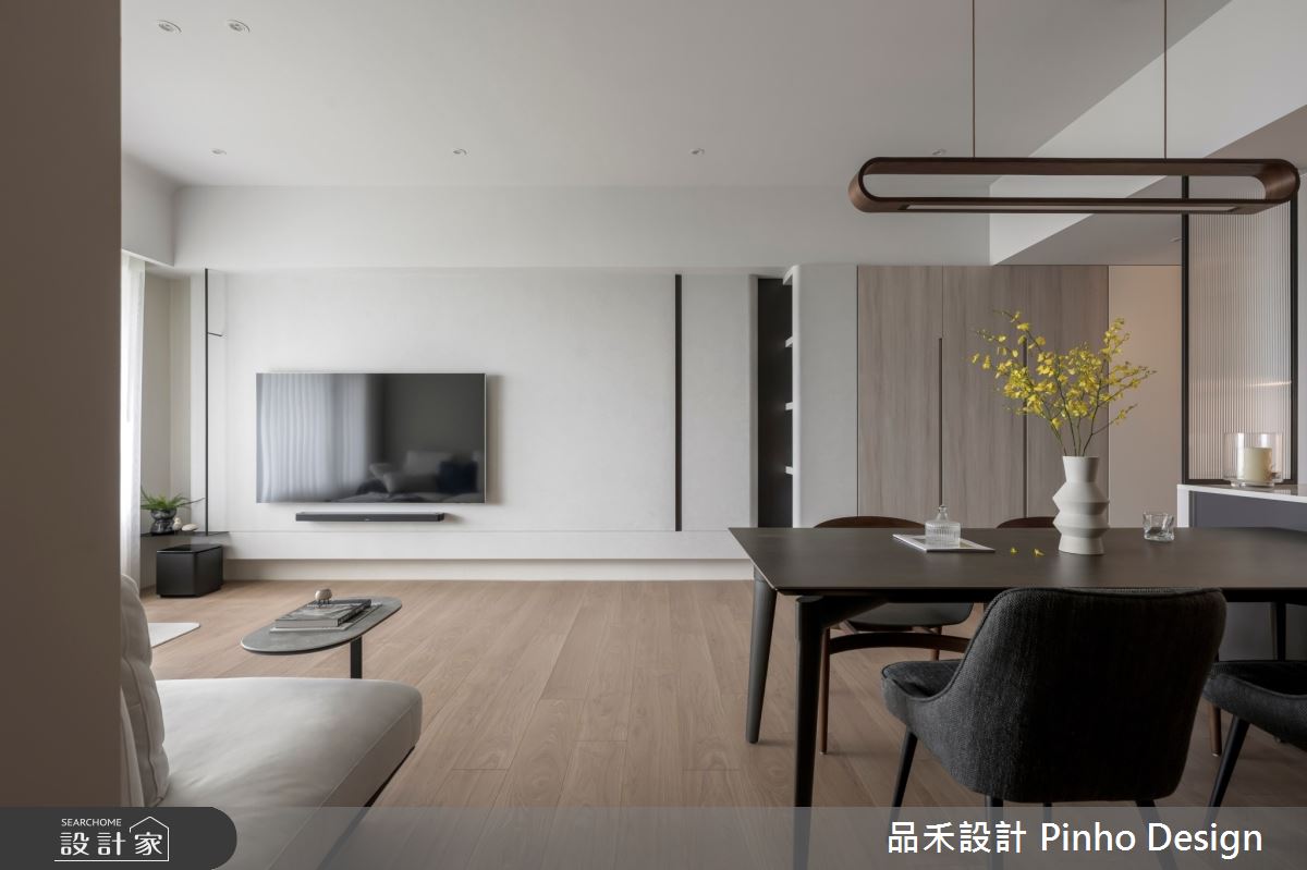 品禾設計以木地板、鐵件、木質、藝術塗料、玻璃的搭配應用,呈現簡約風居家氛圍,將此間43坪、四房、單層、新成屋(5年以下)打造成舒適愜意的家庭空間,完成2位大人、2位小孩全家人的夢想之居。