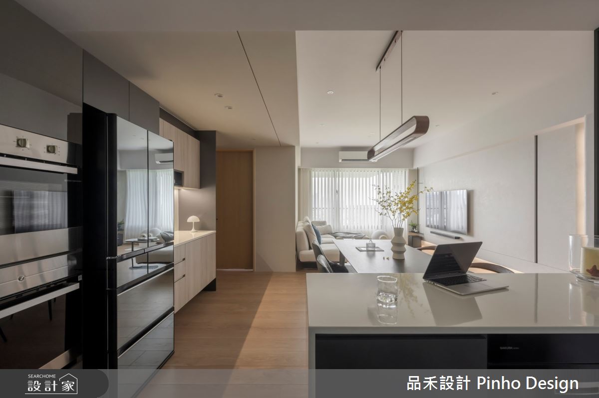 由品禾設計精心規劃的55坪三房住宅空間,家庭成員一共有2位大人、1位小孩。因應屋主需求,設計師運用簡約風作為主軸,搭配鐵件、無縫地板、藝術塗料、系統櫃、地磚,打造全家人的夢想家居。