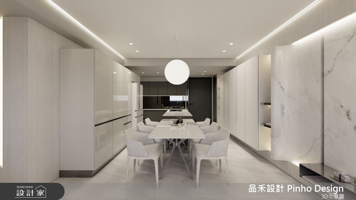 來自品禾設計的55坪奢華風住宅案,是一間單層毛胚屋的三房格局,設計師藉由建材以乳膠漆、石英磚/拋光石英磚、不鏽鋼、鐵件、灰鏡、烤玻、鍍鈦金屬、木作貼皮、烤漆、鋼刷木皮、系統板材、大理石、磁磚、賽麗石、石材的搭配應用,實現一家人的理想生活。