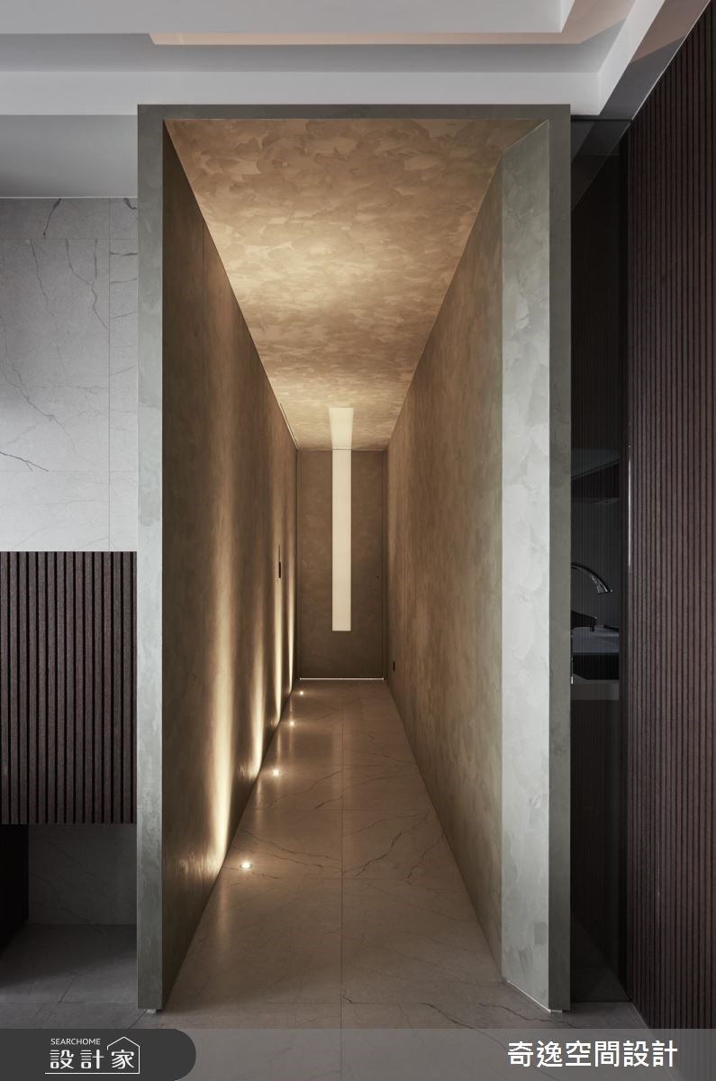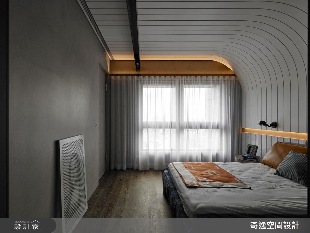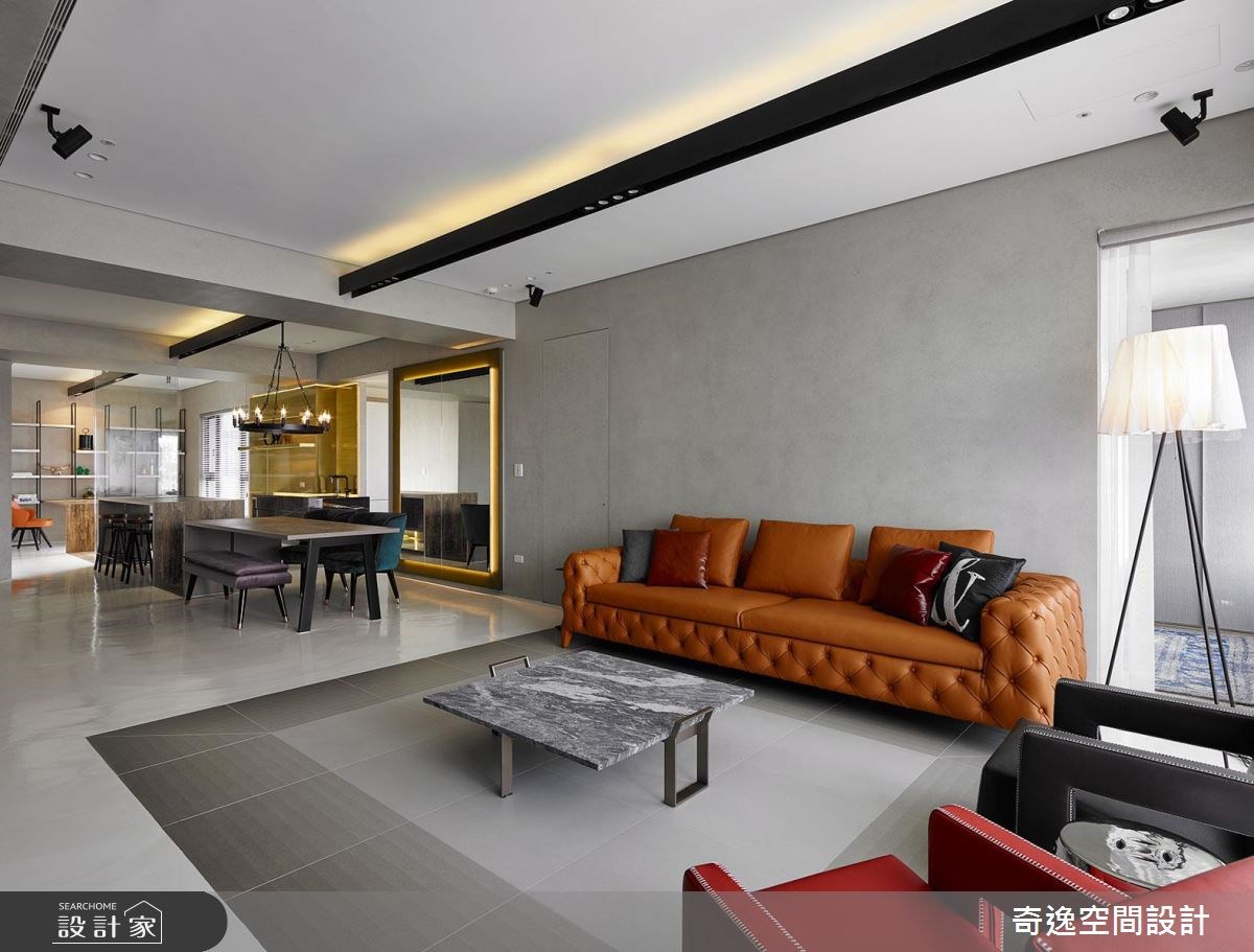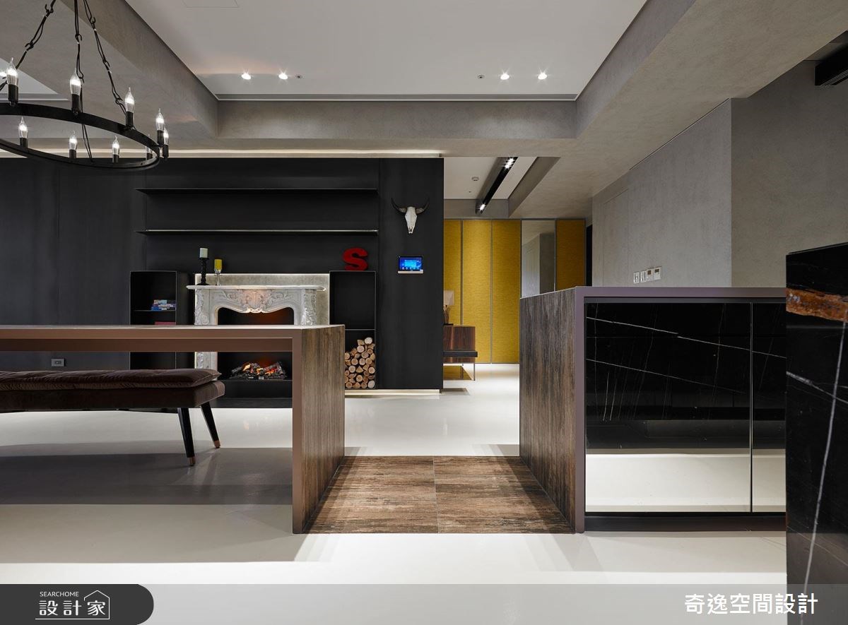 大面落地窗迎接戶外光線,映照出寬敞的公領域氣度。樸實的清水模漆刷出空間最原始的質地,捨棄隔間牆,加上鏡面妝點與開放展示櫃的形式,讓空間自然放大數倍,享受舒心暢快的室內氣息。 入室後的玄關,藉由木作矮櫃、人物雕像的藝術畫作打造一處現代感的前衛端景,引領出家屋的風格特色。沿著清水模質感的壁面走進餐廳區,以黑鐵板鋪陳的主題牆,融入白色古典歐風的壁爐設計,更延伸出整片電視牆體,大面積的尺度擘劃,彰顯非凡氣勢;壁爐造型牆結合鮮明的黑白色系,對比的視覺形塑出強烈的時尚風情,上方以層板規劃出展示機能,下方則以原木堆疊,與壁爐內的溫度相互呼應,增添溫暖感受;吧檯與餐桌間以同樣木紋質材的地坪做為串連,視覺延伸的感受讓領域更顯遼闊、放大;吧檯後方的收納櫃結合LED燈與鏡面,穿透視覺與光感交織出新穎的前衛感;吧檯旁設計一道玻璃拉門,界定出書房區域,明亮的光線與開放的展示書架,釋放出自然、紓壓的人文氣息,轉向客廳時,視線更能一眼望向落地窗,視線隨之遼闊、開放。 小編的最愛 整體空間為長方屋型,利用現代風的俐落明快,結合工業風蘊含的自然原始之美,局部搭佐LED燈的方式,調和出混搭、漸層的美學境界。