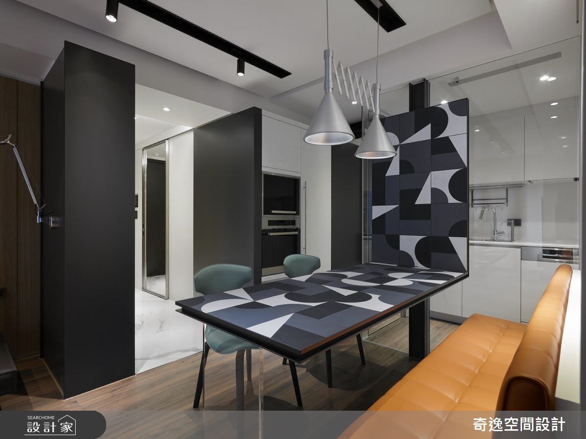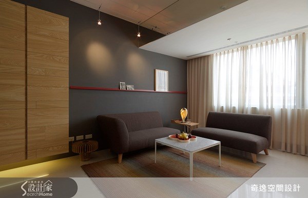20 坪的長型屋,設計師扭轉格局劣勢,透過聰明的機能規劃,替廊道挹注不少收納空間,賦予更具彈性的使用動線,快跟著小編一起來看看吧! 客廳,透過大面積素樸木紋鋪陳沙發牆,並特別妝點橘紅色皮革,搭配靜謐典雅的大理石電視牆,襯出簡潔時尚的基調,格局安排上,則依循原始架構,依序排列客餐廚的位置,透過長向的機能安排,換取更充裕的坪效運用,善用每一吋立面空間,加入收納與展示機能,以木紋穿插鐵件混搭櫃體外觀,使機能與美學面面俱到,也成為步入書房內的指引畫面;餐廳,延續了客廳的橘紅色主題,讓公領域形成一氣呵成的協調性,同時打造幾何圖騰桌面,延伸成為視覺主牆,玩賞出普普風趣味,與廚房之間,則選用清透玻璃做隔間,讓生活中隨時可保有聯繫互動! 小編的最愛 寢臥內,選用深色木色鋪陳床頭,並讓木紋垂直與水平交錯,帶出細節層次,創造靜謐雅致的質感!