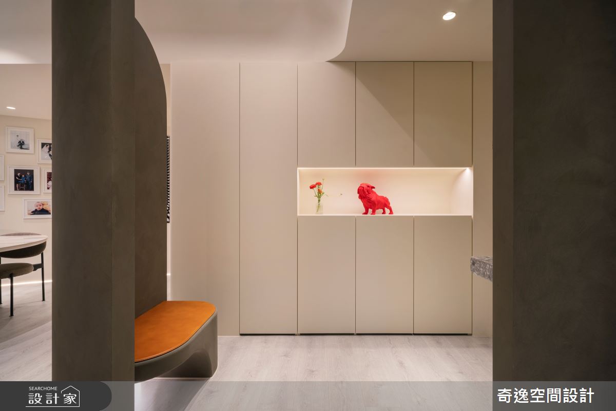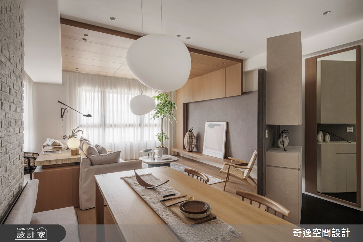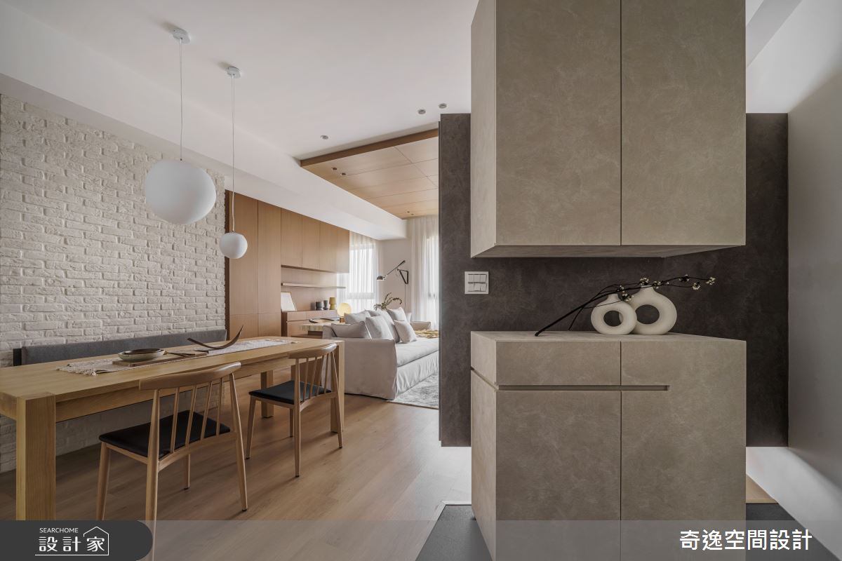 來自奇逸空間設計的29.5坪現代風住宅案,屋主一家人共有2位大人、2位小孩,是一間單層新成屋(5年以下)的三房格局,設計師藉由建材以油漆、乳膠漆、文化石、超耐磨木地板、鐵件、木作貼皮、烤漆、系統板材、磁磚、皮革、石材、繃布、噴漆的搭配應用,實現一家人的理想生活。