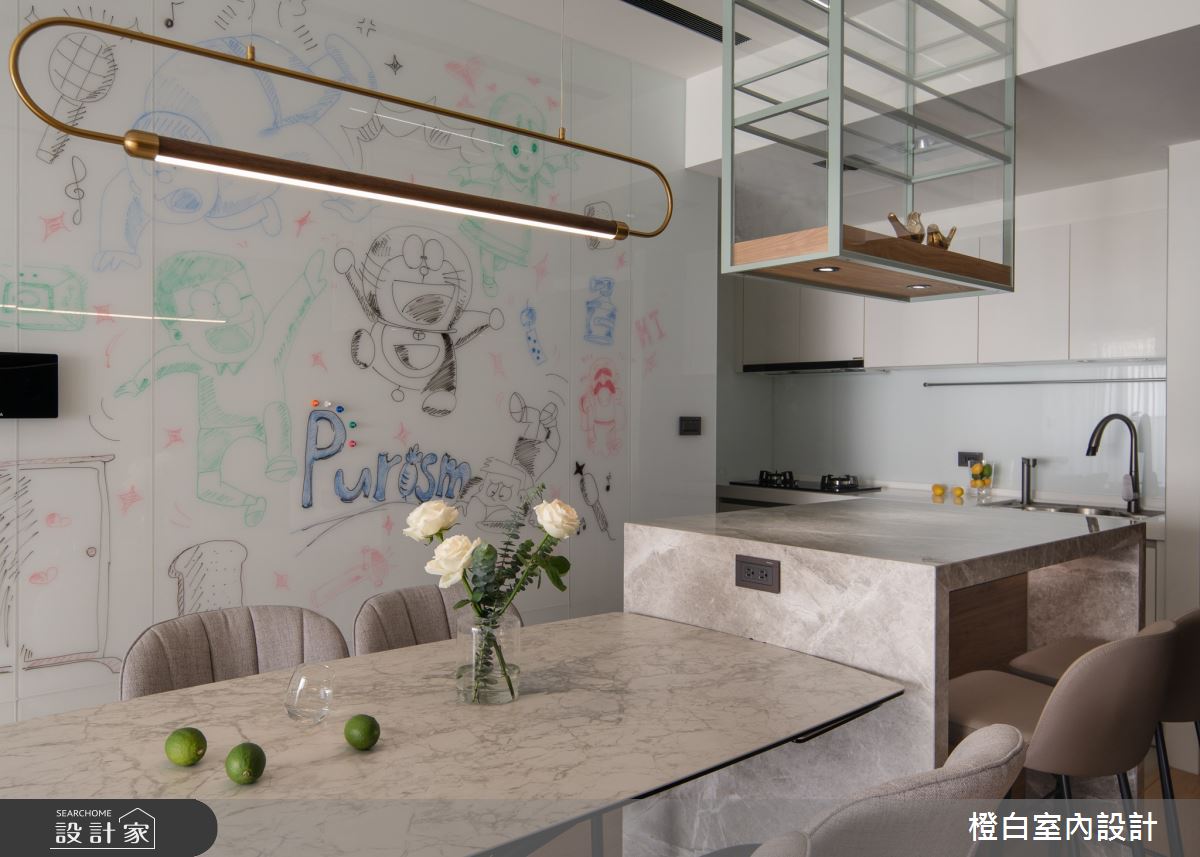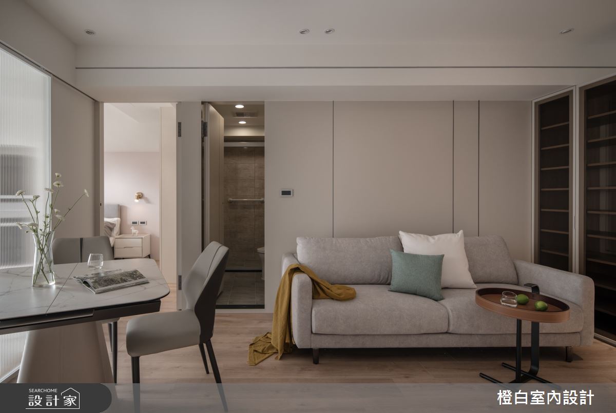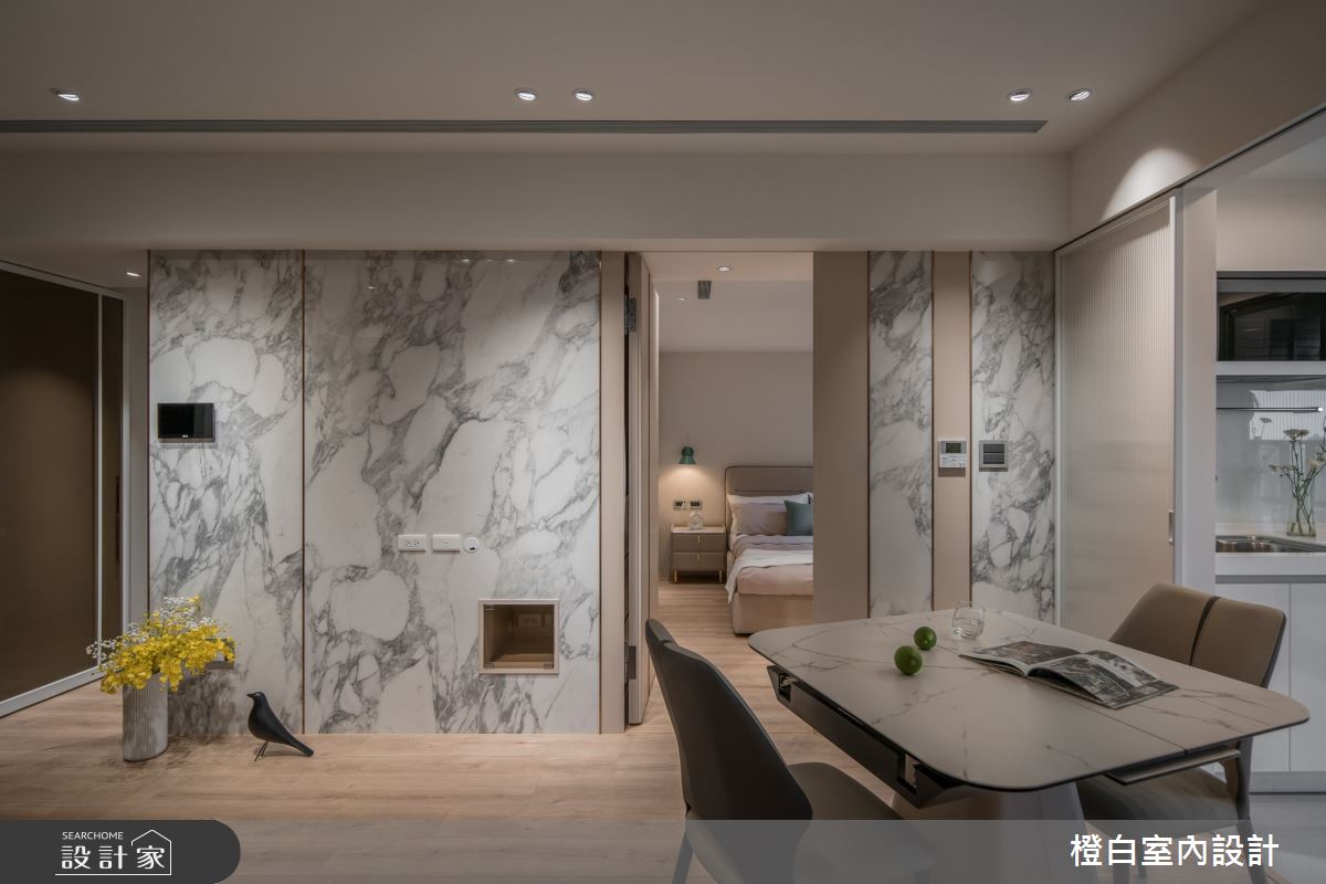 來自橙白室內裝修設計的29坪現代風住宅案,屋主一家人共有2位大人,是一間單層新成屋(5年以下)的兩房格局,設計師藉由建材以石材、茶鏡、格柵烤漆、跳色乳膠漆、美耐板、波麗板、選色烤漆玻璃、大板磚、優白清玻璃、明鏡、茶色玻璃、鐵件、人造石、壁紙、磁磚的搭配應用,實現一家人的理想生活。