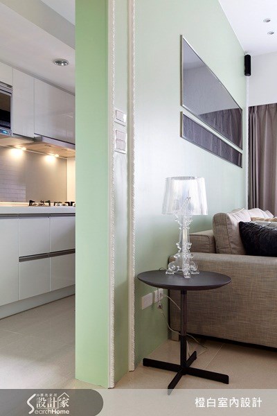 僅有10坪的都會居家空間,屋主提出明確得個人需求,以專業及創意手法打造,將有限制的腹地發揮得淋漓盡致,因而成就這個充滿夜店氣息得住家。因應挑高的格局,動線規劃簡單明快,一樓容納客廳、廚房及洗衣間、浴室、客房,二樓則是睡臥區及更衣間,在硬體上並未作太繁複的規劃,而是運用家具及裝飾佈置元素來營造空間的風格。由於業主表示期望營造出夜店的時尚氛圍,所以在選材級配色上都極為大膽,在玻璃隔間立面上可以看到過往常在商業空間使用透貼、近年流行的壁貼,不僅帶來搶眼的視覺效果,穿透性的隔間,也維持了空間的通透性。「浪漫」也是另一項明確的要素,客廳主牆刷上柔和的淺紫色,區隔客廳及廚房的珠簾,紫桃色的沙發,花樣圖騰的抱枕,絲綢材質的捲簾,都具體了反映了女主人的喜好。燈具的選擇也頗費心思,客聽從天花垂掛的燈具,牆上獨特造型的壁燈,都是吸引目光的焦點。另外,音響器材的隱藏式折門,門片上的洞孔處理極為搶眼;在有限的空間中,依然保留出一間可彈性作為客房或小孩房的房間,也讓空間使用上更具變化。裝修費用:100萬以下。