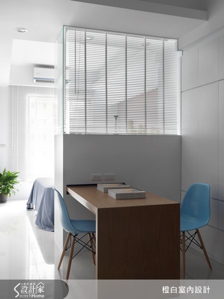 單身的業主喜歡簡約的設計風格,屋況為全新,但屋型狹長且空間有限,為此設計師將空間極致運用,12坪內包含鞋間與客、餐廳,讓屋主可以擁有完整收納空間!臥室和大浴室跟大後陽台之間利用玻璃作為隔間,讓狹長空間前端,也能引進光線!伸縮餐桌讓客人聚會的時候可以有個完整餐桌空間,一個人的時候,可以把餐桌收入,讓客廳空間更舒服。房屋格局:1房1廳。裝修費用:66萬。